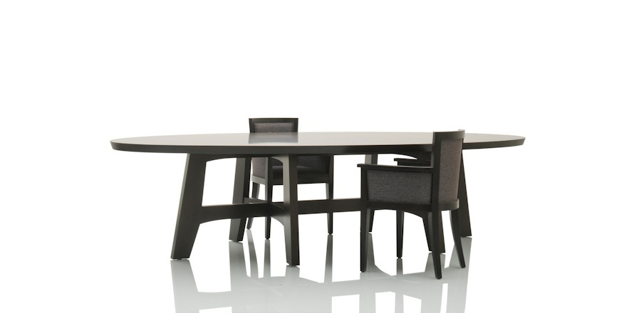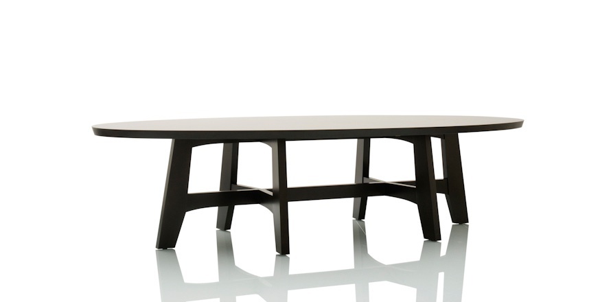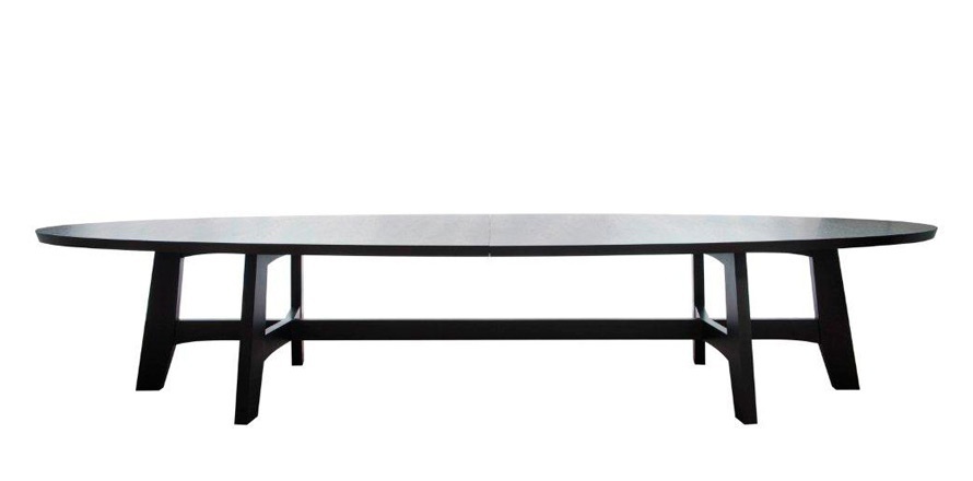 Tundra dining table from the Belgian manufacturer JNL. A model of oval shape made from solid wood. The surface is covered with Matt lacquer. The style is modern. Colours in stock.