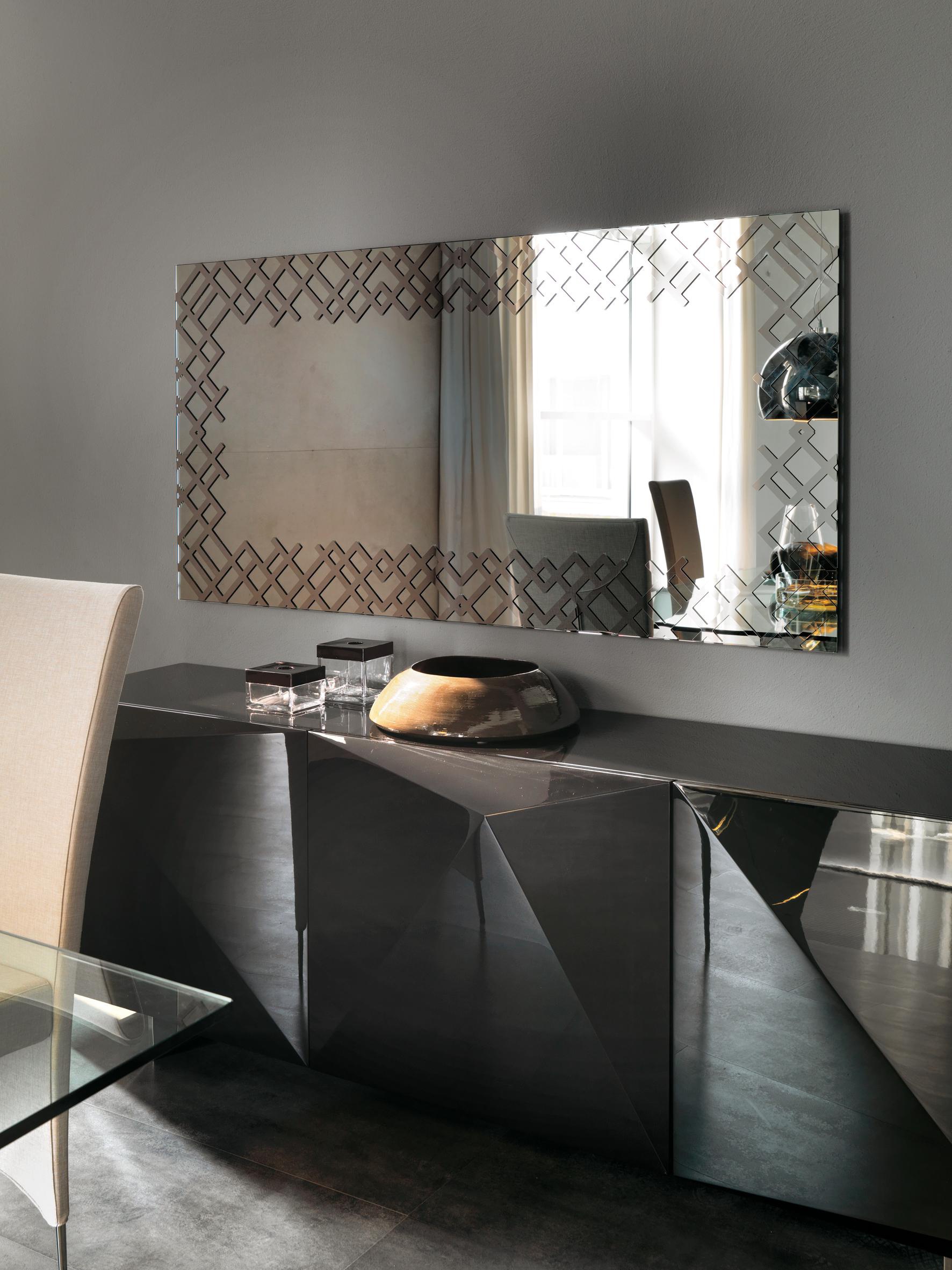 Mirror Jersey from Italian manufacturer Cattelan Italia. The model without a frame of rectangular shape. Made of mirrored glass with engraving around the perimeter. The model is intended for interior decoration in a modern style. Product color steel.