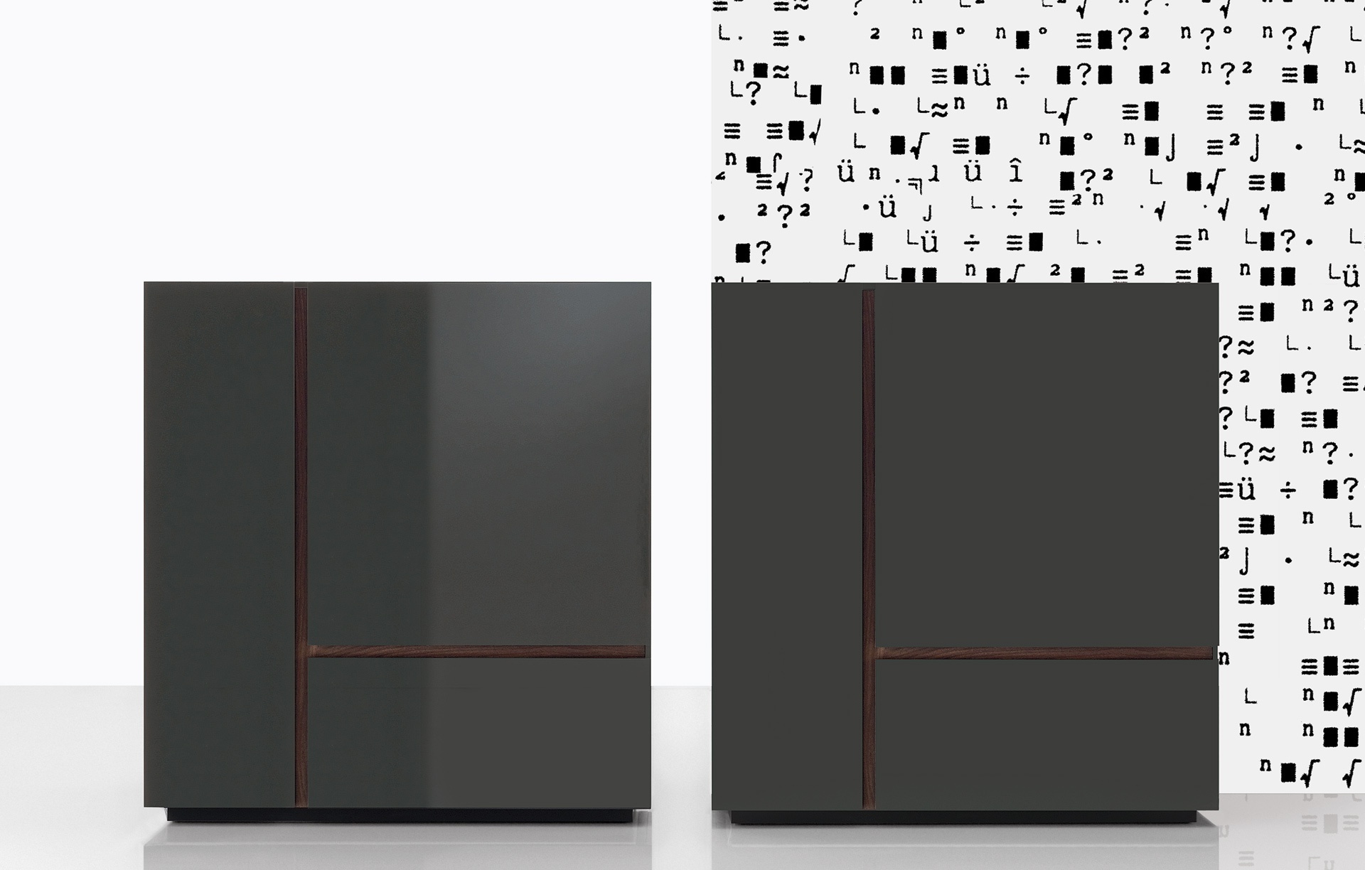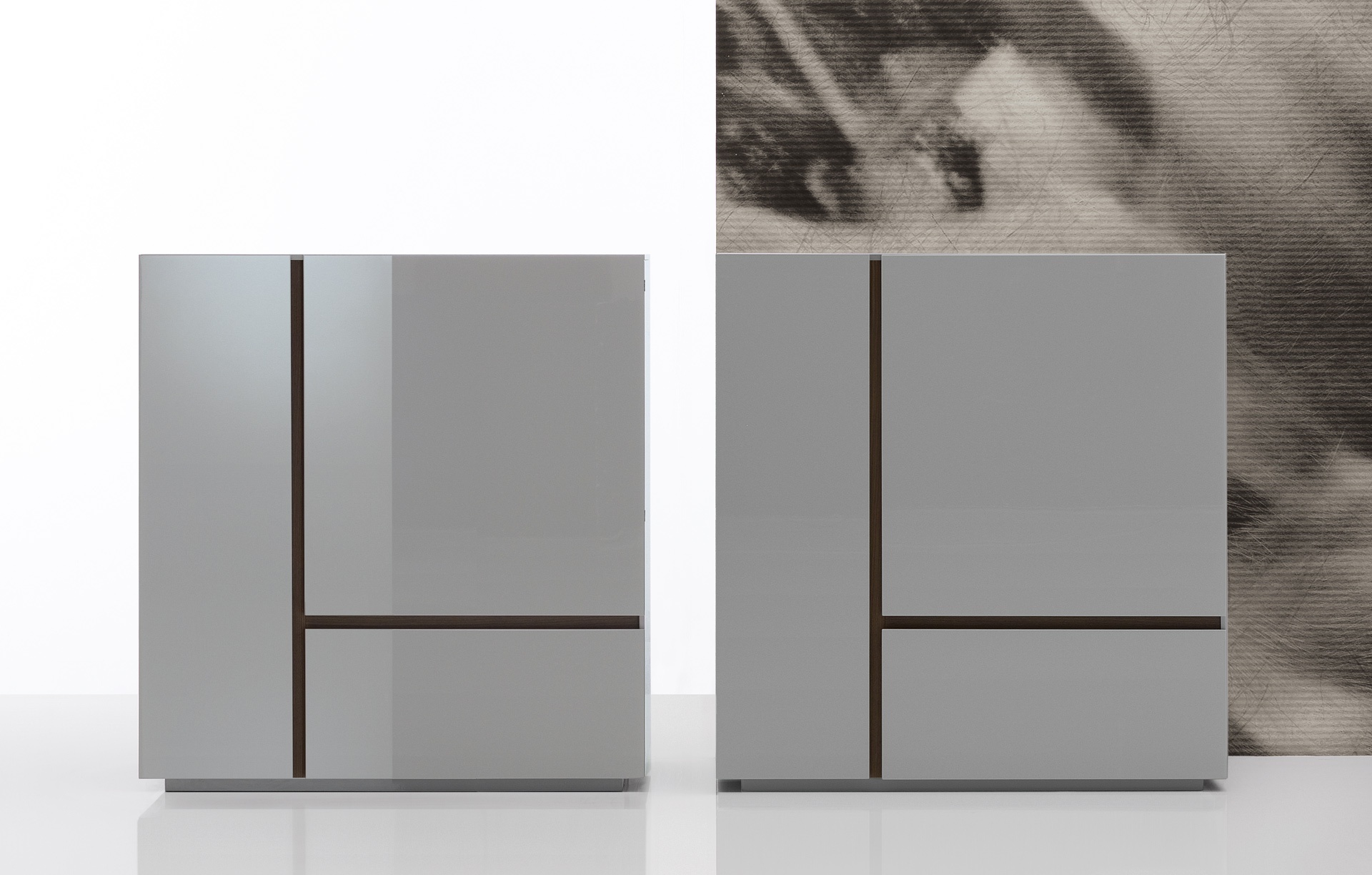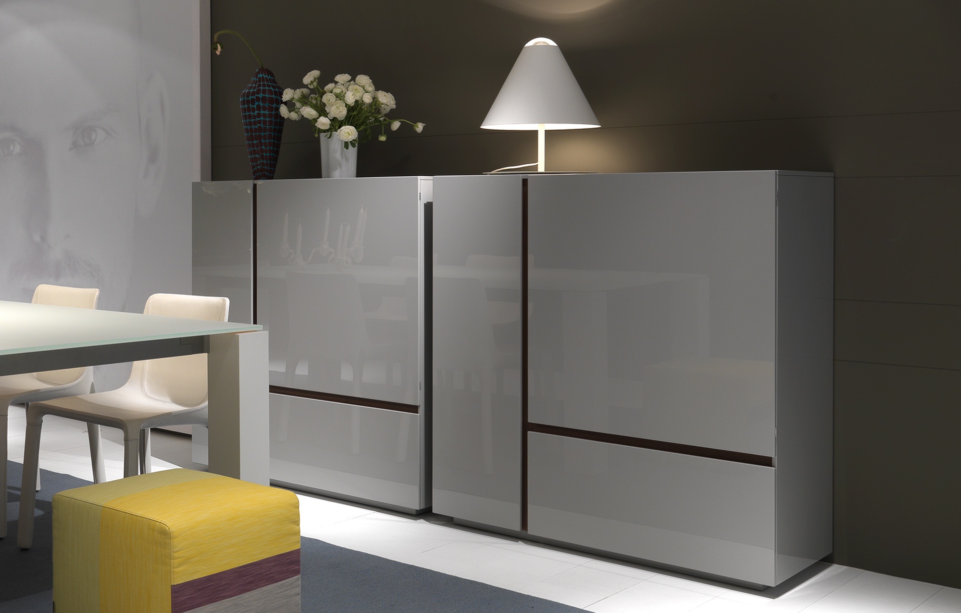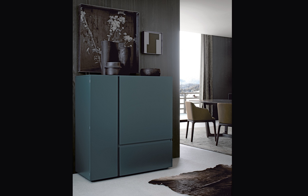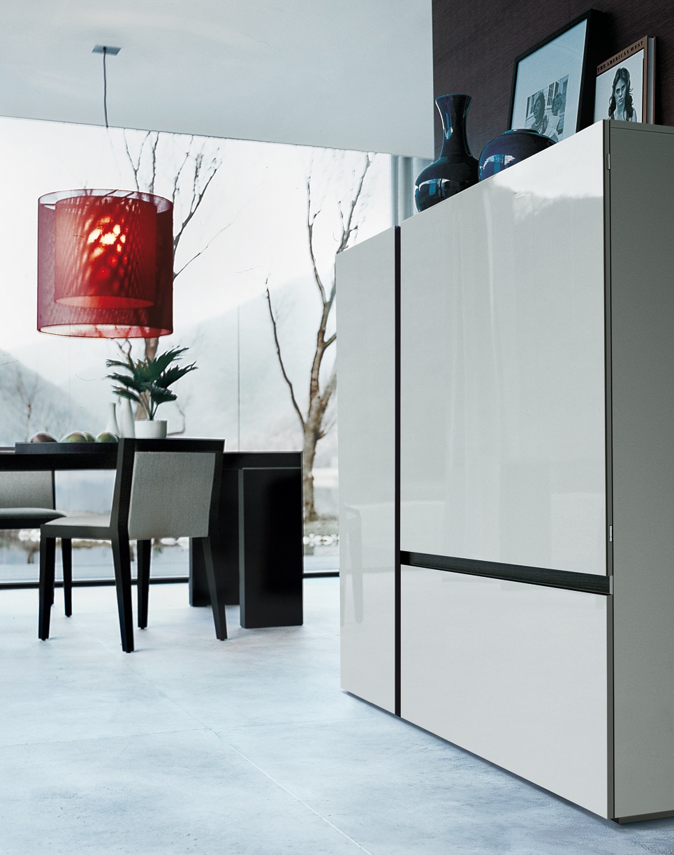 Free stand from Italian manufacturer Poliform. Model waponline in a modern style. The body is made of solid wood. The surface is covered with a glossy varnish. Available in several colors.