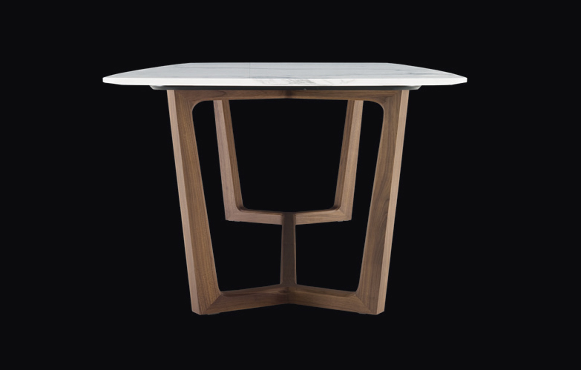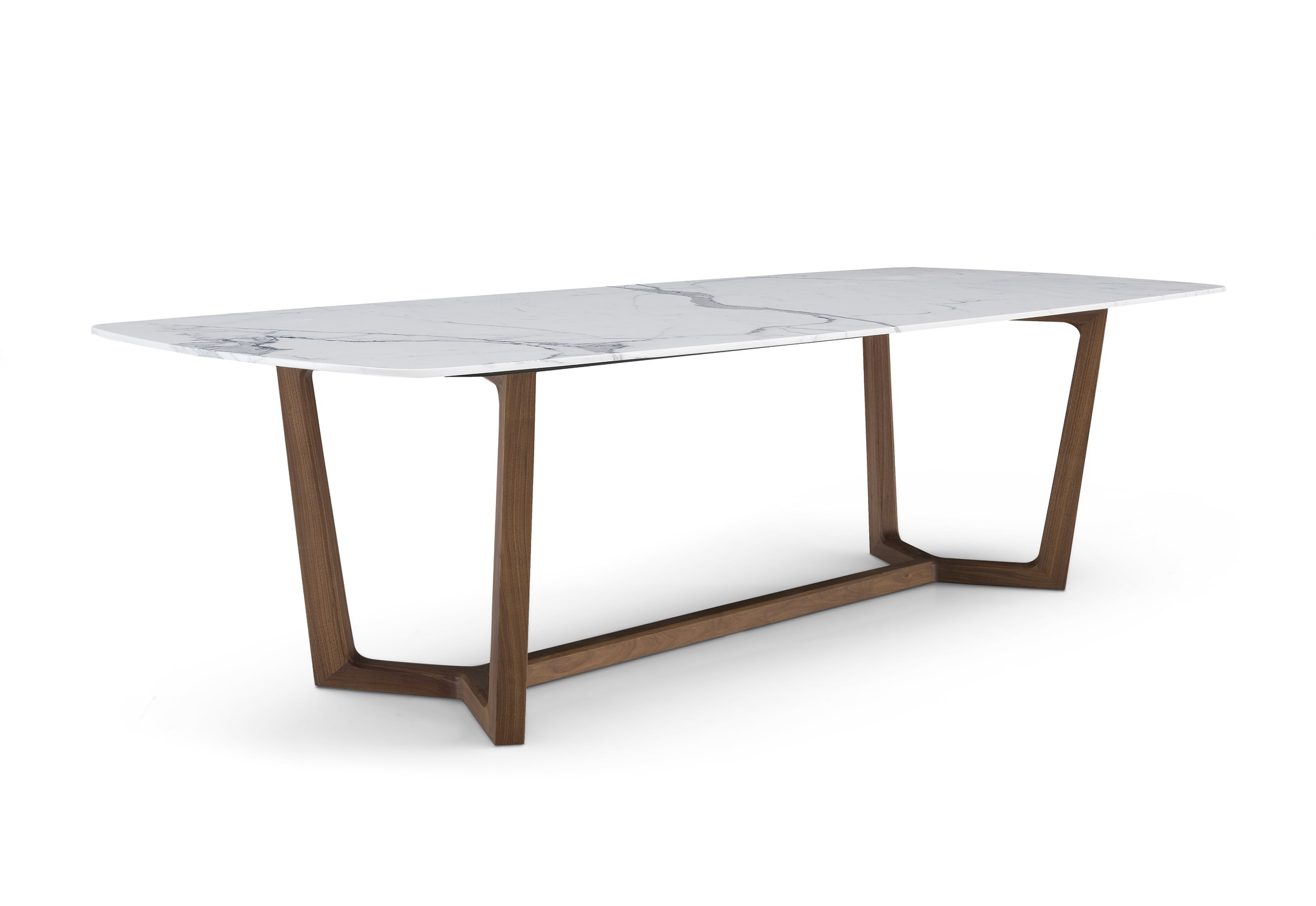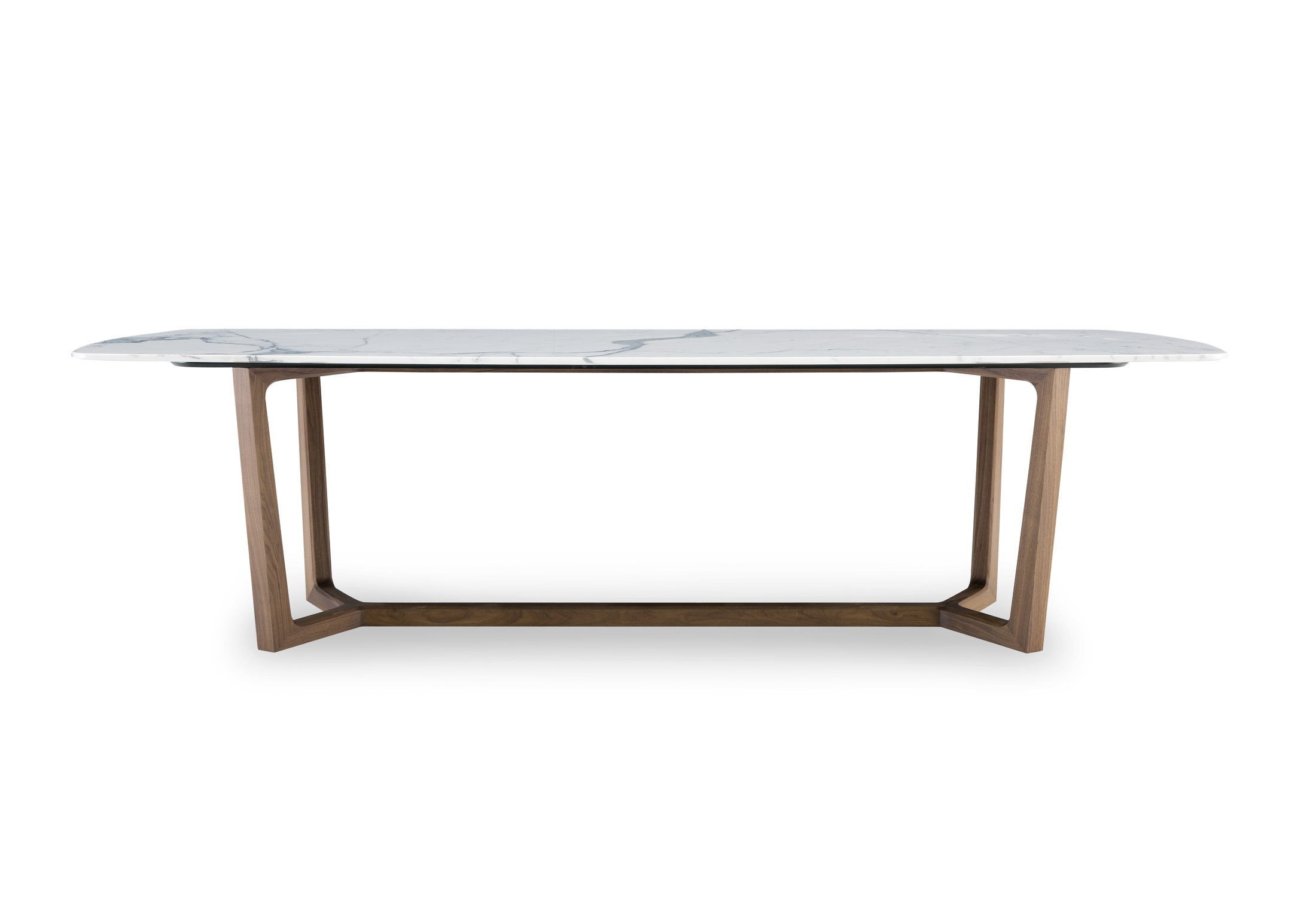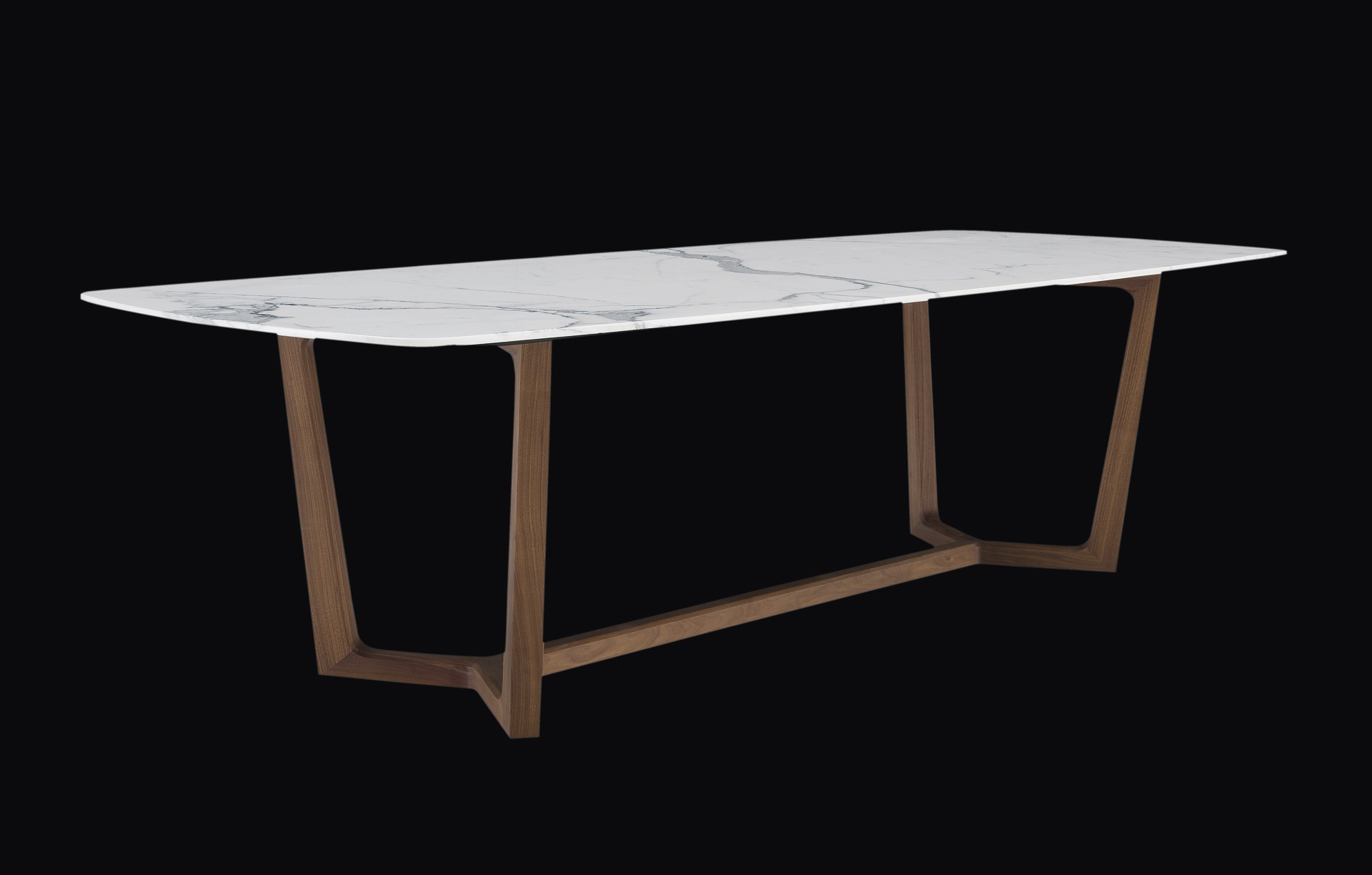 Concorde dining table from Italian manufacturer Poliform. Designed by designer Emmanuel Gallina in 2009, the model is gaining popularity. The apparent simplicity of form is balanced by natural materials and attention to detail. Legs and base are made from solid wood; soft forms emphasize its naturalness. Table top marble rectangular or round shape. Available in black or white veined marble. The perfect solution for any modern interior. Colors and finishes in stock.