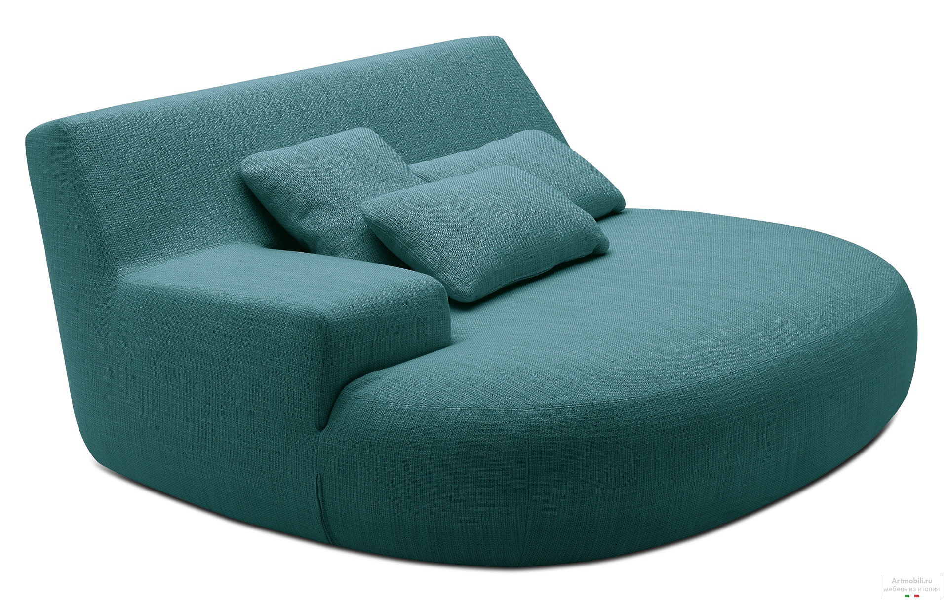 The Big Bug chair from Italian manufacturer Poliform. The model with one low armrest. The frame is hidden. As upholstery, the factory offers a choice of 7 colors of leather and fabric option 34. Complement the design of the decorative pillow of similar design.