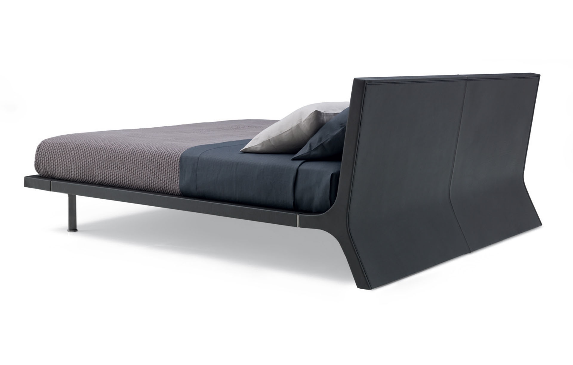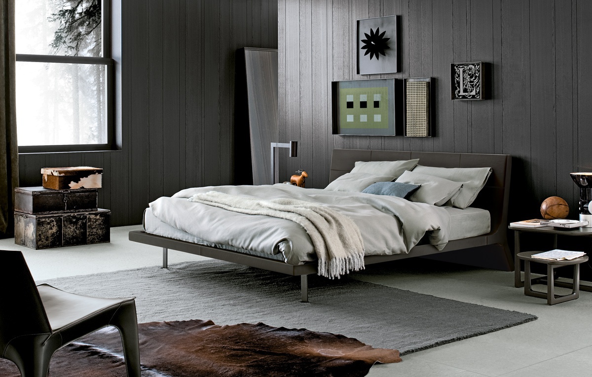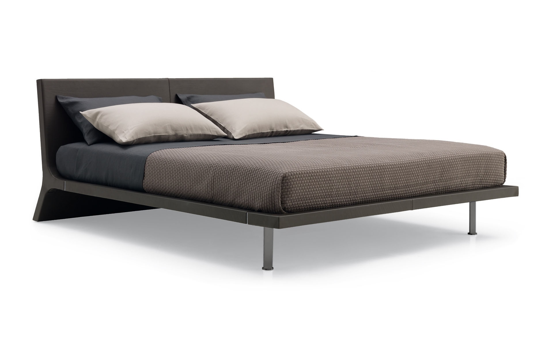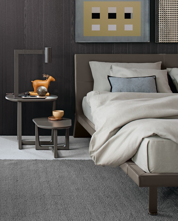 Double bed Angie from Italian manufacturer Poliform. The model is made in a modern style. Stainless steel legs. Frame made of solid wood. Finish option to be selected from a catalog company. Is practical and compact.