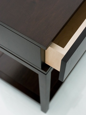 Console Trenta Due from Belgian producer JNL. Model with drawer. Legs, table top - natural wood. The surface is covered with Matt lacquer. The style is modern. Colours in stock.