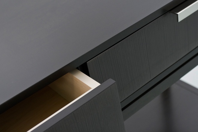 Console Trenta Due 2 from Belgian producer JNL. Legs, the table top is made of solid wood. Model with drawers. The surface is covered with Matt lacquer. The style is modern. Colours in stock.