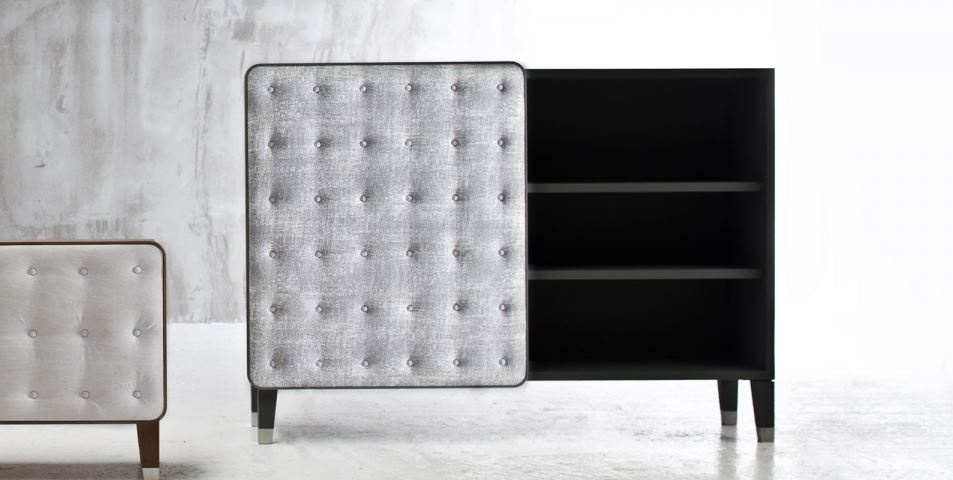 The Brick rack 67 from Italian manufacturer Gervasoni. Model of the collection Brick. The case is made of walnut. The doors are in the textile upholstery. Legs - walnut with bits of aluminum. The choice of color in stock.