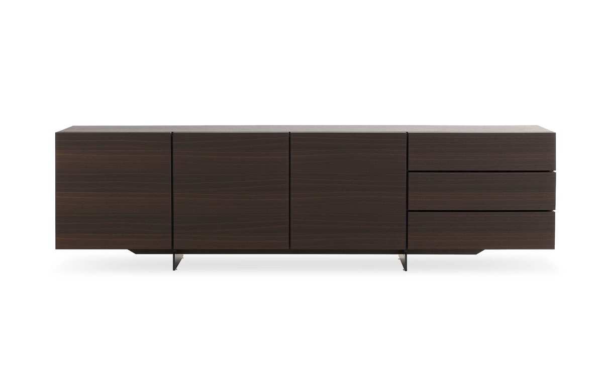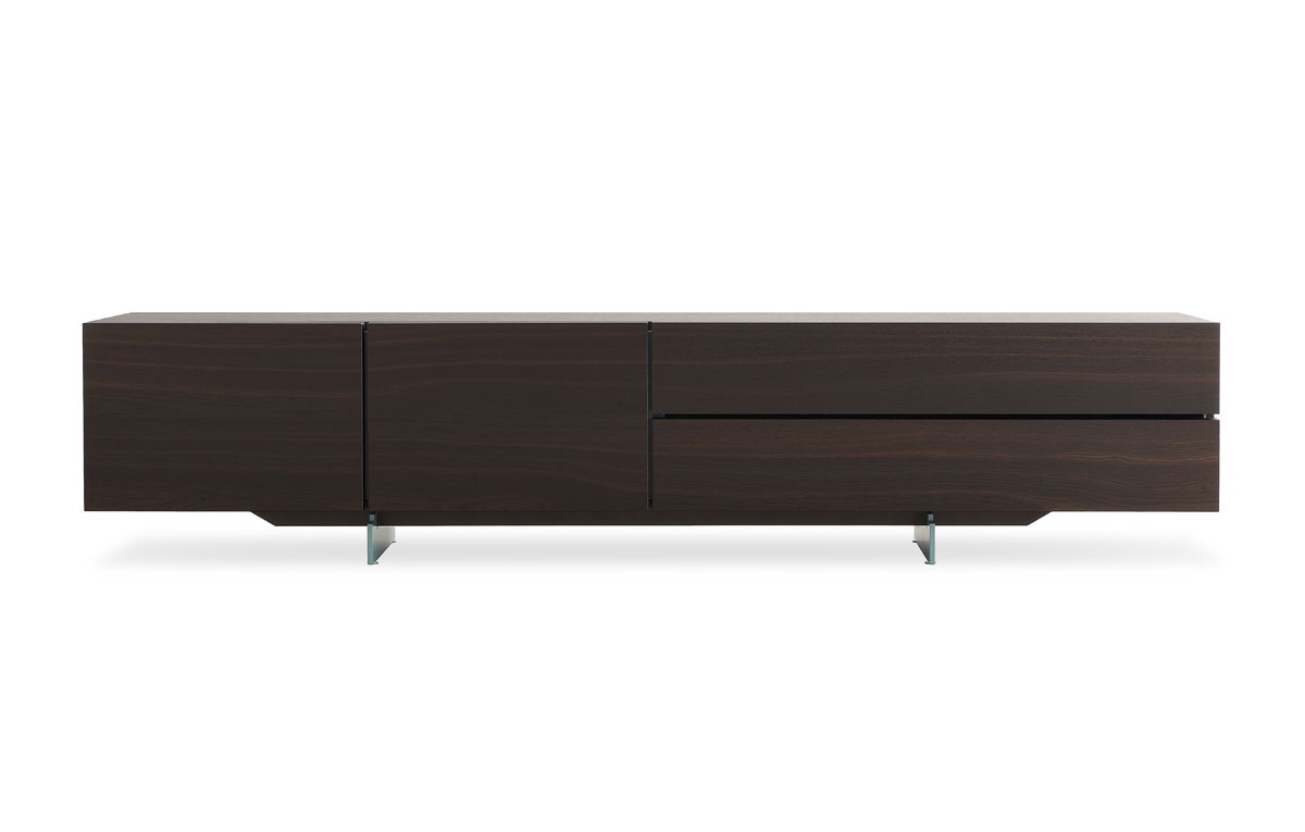Pandora stand from Italian manufacturer Poliform. The model is very roomy. Finish - choice of: in Matt lacquer (27 options) or veneer color oak. Legs - metal, painted in bronze. Sliding sash and hinged. Different practicality and spaciousness.