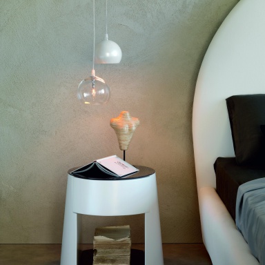 Nigel side table from Italian manufacturer Cattelan Italia. Rounded model with a drawer and a niche for accessories. Made of polyurethane. Modern original design. A great addition to the interior. Color in stock.