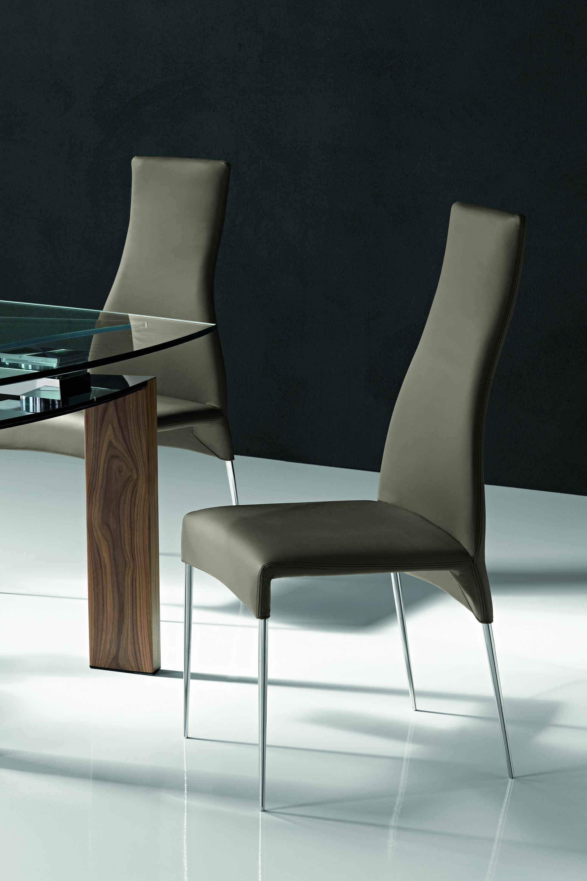 Chair Carol from Italian manufacturer Cattelan Italia. The frame is made of stainless steel. The seat and back - textile or leather. Great model with high back for modern interior. Colours in stock.