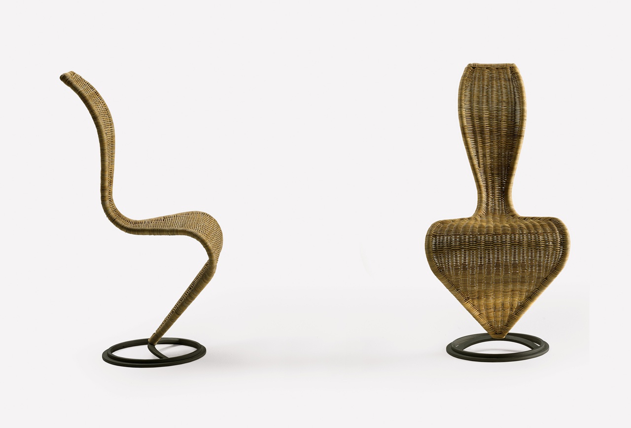Chair S Chair Limited Edition from the Italian manufacturer Cappellini. The model is woven from rattan with a metal frame. The style is modern. Colours in stock.