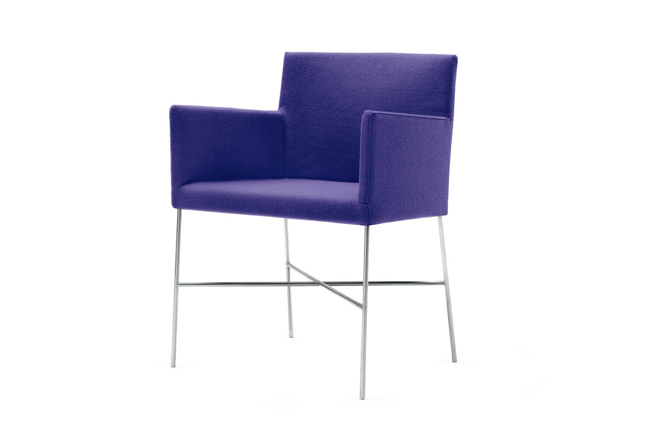Crossoft chair from the Italian manufacturer Cappellini. Legs, frame - metal. Upholstery - textiles, leather. The model with armrests is designed in modern style. Colours in stock.