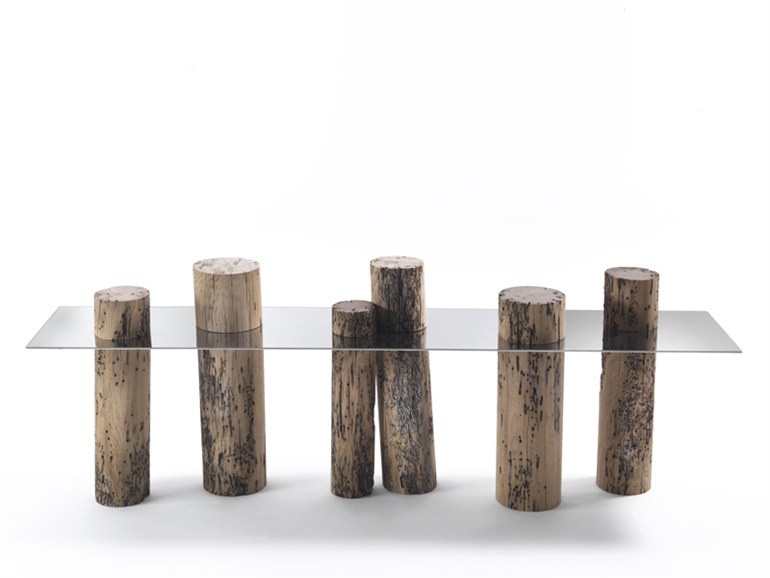 The console Venice from the Italian manufacturer Riva 1920. Legs - natural wood. Worktop - glass. The model is made in modern style. Colours in stock. Options size: L2500 P500 mm, mm L1800 P500, P500 L1200 mm.