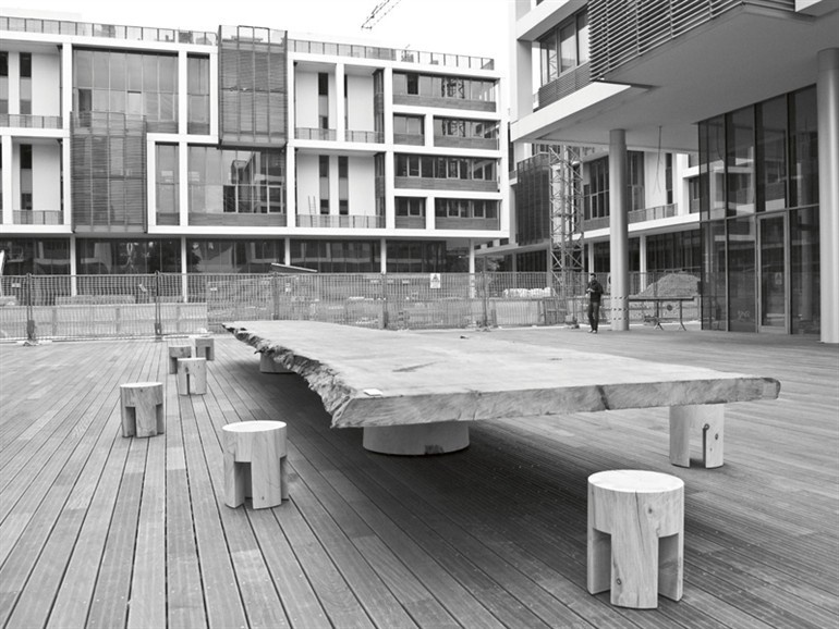 Kauri dining table from the Italian manufacturer Riva 1920. Finish - Matt lacquer. Legs, table top - natural wood. The model is made in modern style. Colours in stock.