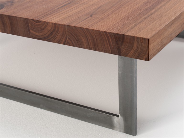 Irony coffee table by Italian manufacturer Riva 1920. Base - metal. Worktop - walnut / oak. The thickness of the table top contains a special groove that can be used to store objects. The model is made in modern style. Colours in stock. Possible table size: H380 mm P800 L800, L1000 mm P1000, P1200 mm L1200, L1400 mm P700, P600 L1200 mm.