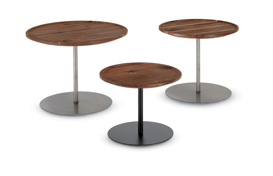 Plaza coffee table from the Italian manufacturer Riva 1920. Base - metal. Worktop - metal. The finishing - varnish. The modern design. A great choice for the interior. Colours in stock. Possible table sizes: D50 H375 mm; H515 mm D600; D700 H515 mm.