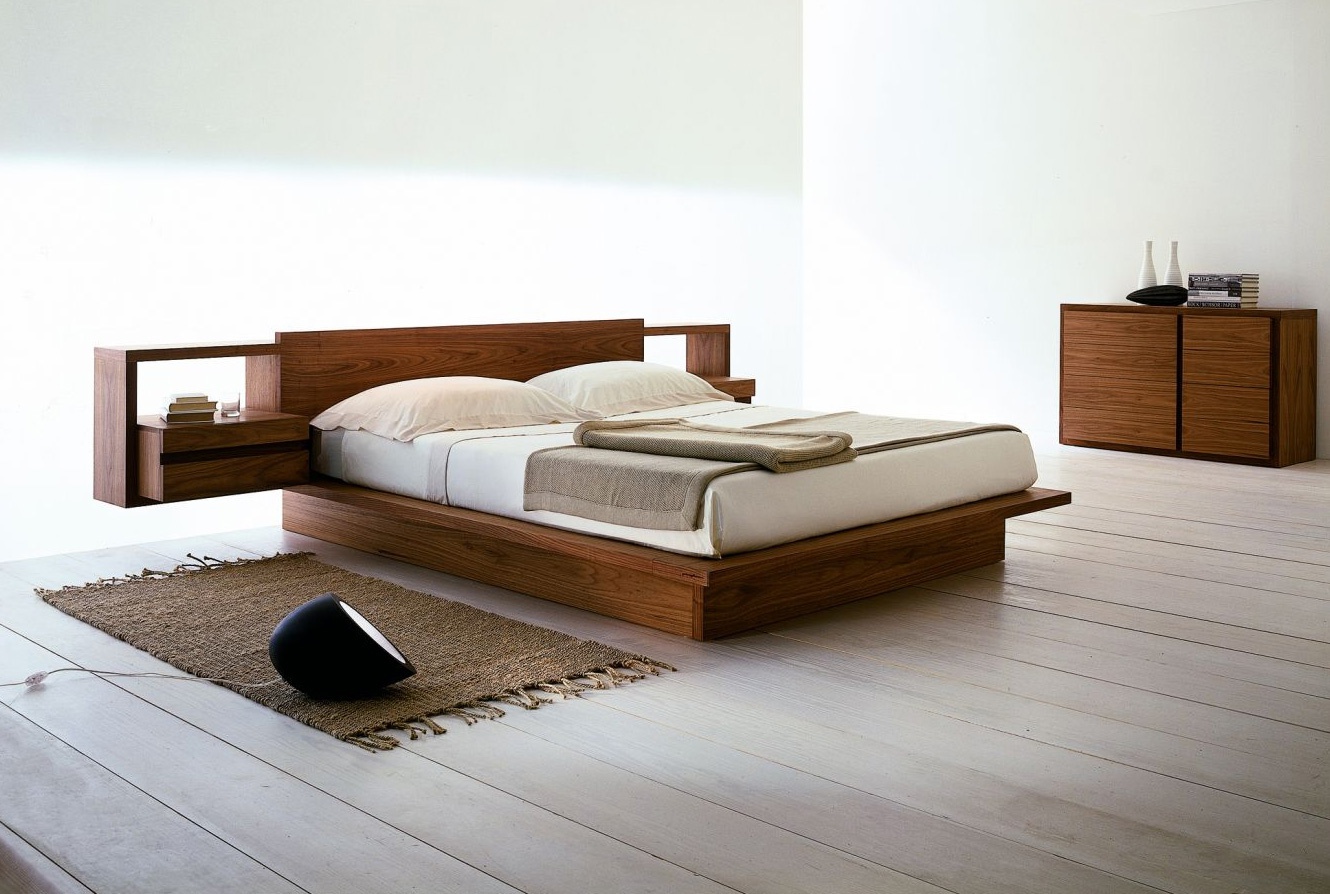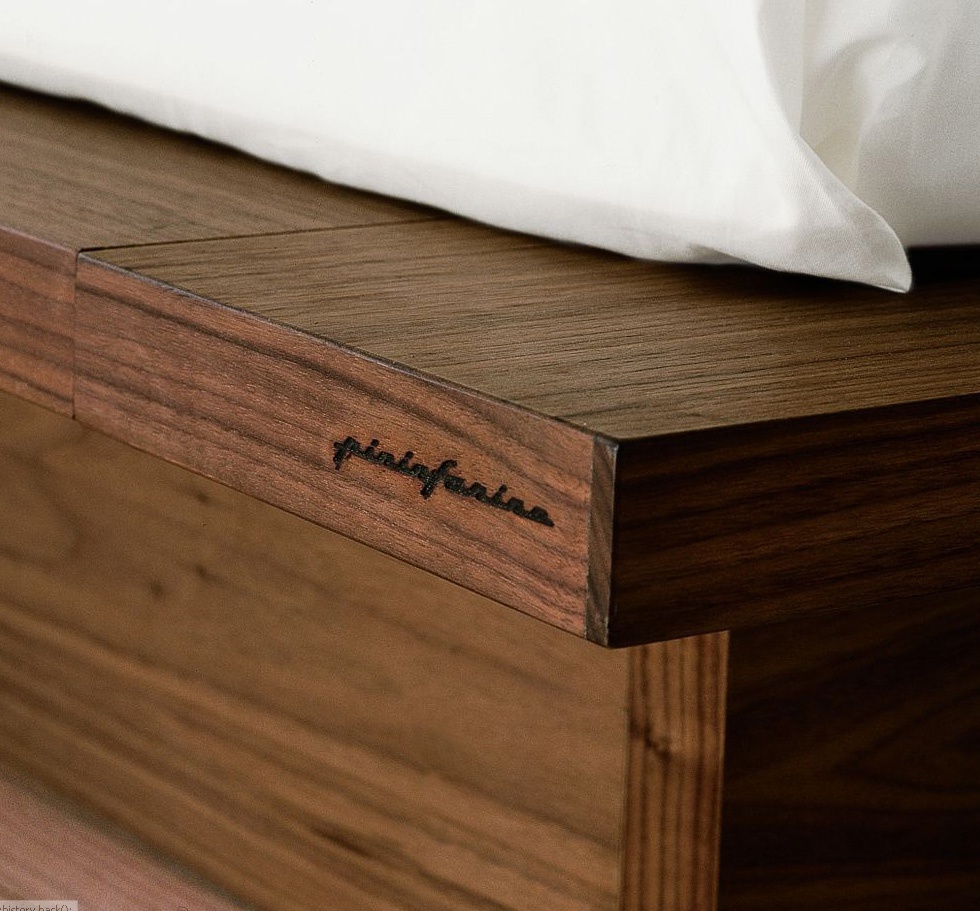Double bed Torino from the Italian manufacturer Riva 1920. Bed with bedside tables. Design of solid walnut. Upholstery - textiles. The model is made in modern style. Colours in stock. Possible dimensions: L2800 P2350 H770 mm, P2350 H770 mm L3000, L3100 P2350 H770 mm, P2350 H770 mm L3200, L3400 P2350 H770 mm.