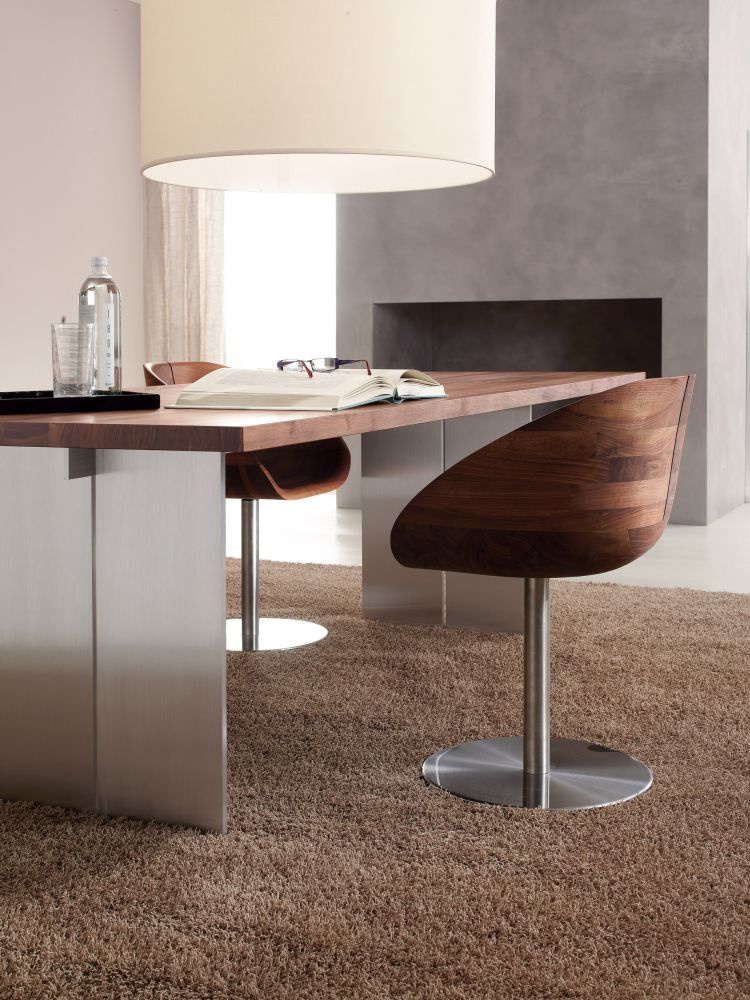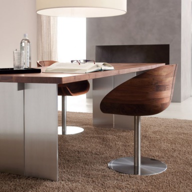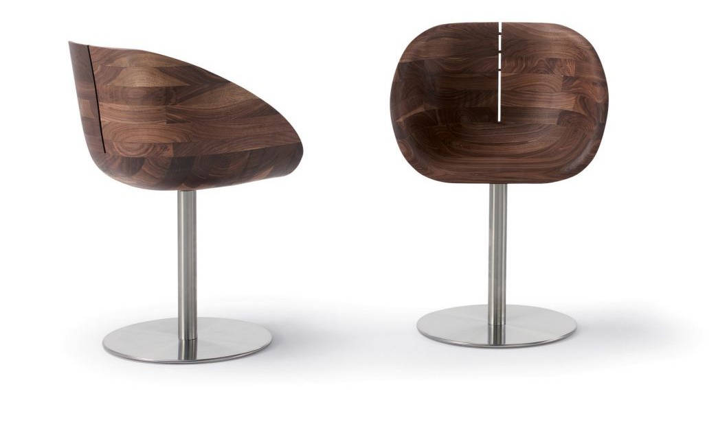 Chair Gioconda from the Italian manufacturer Riva 1920. Model on a swivel base made of brushed steel. The seat and back - natural wood. The style is modern.