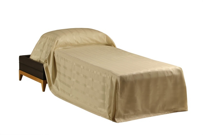 Pouf-Sgabello Bed from Italian manufacturer Morelato. Bed-transformer on a low wooden legs. The collection is made in the style of the 90-ies of the last century with his characteristic geometric forms and crisp lines. Finishing material of leather. The base under the mattress from the slats. The frame is made of quality wood.