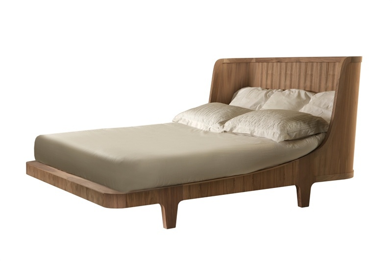 Double bed from Italian manufacturer Morelato. Frame this model is made of cherry wood. The bed is equipped with a comfortable curved headboard. Colors in beige and brown tones. This model is made in the style characteristic of early twentieth century. The mattress is made of slats, beech.