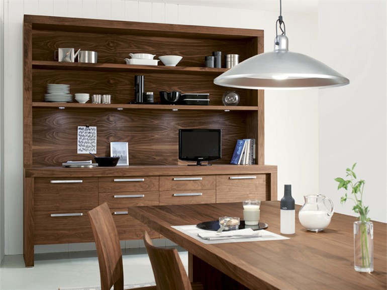 Sideboard Life from the Italian manufacturer Riva 1920. Made of wood walnut. Fittings are made of aluminum. Model with open shelves and drawers. A multifunctional sideboard, in the drawers you can put table linen, accessories and kitchen utensils. Classic shape a modern twist - the perfect complement to the modern interior. The color of natural wood.