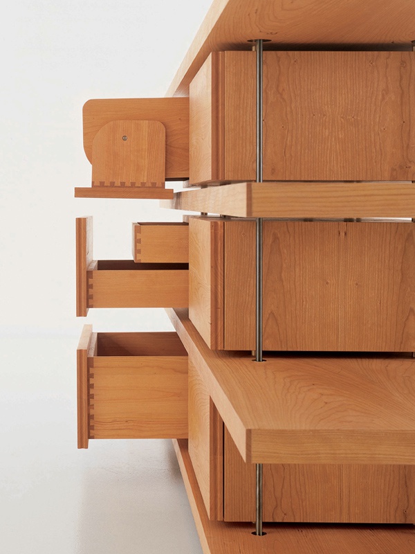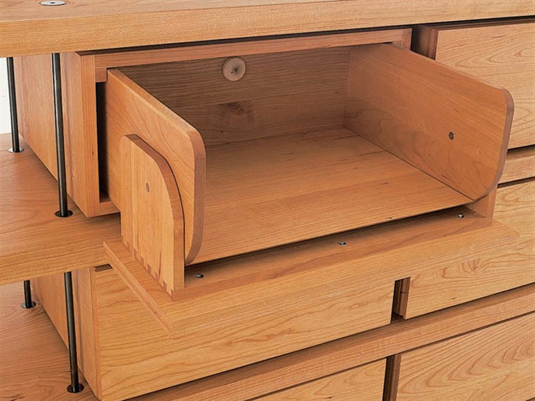 Sideboard Piano Design from the Italian manufacturer Riva 1920. Made of solid wood. Fittings - metal. Model c open shelves and drawers, in which you can remove or hide unwanted items. The perfect addition to any interior. The color of natural wood.