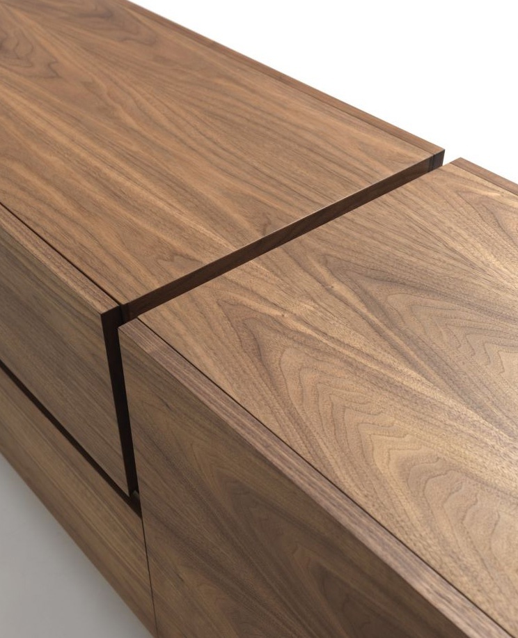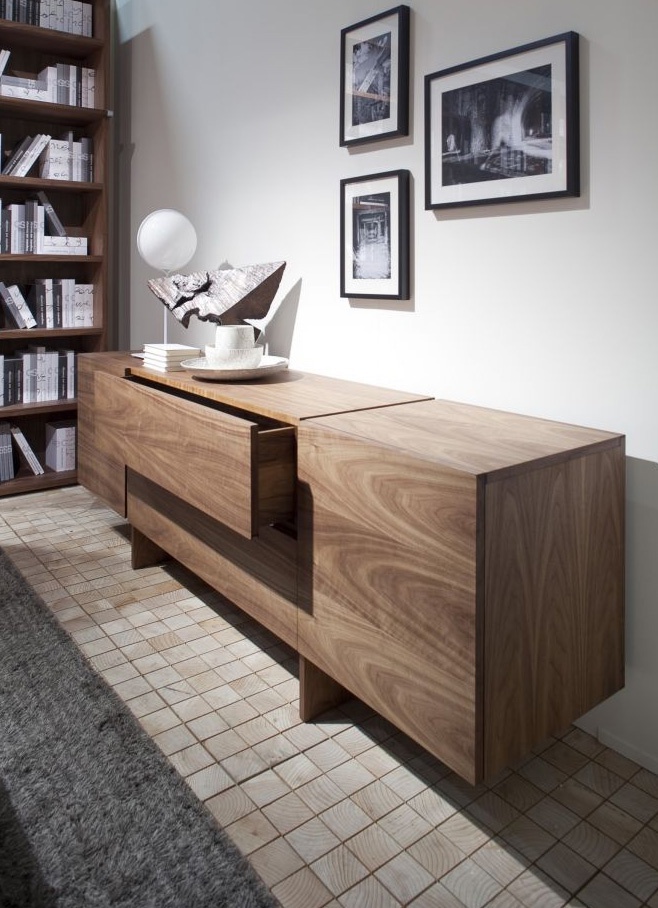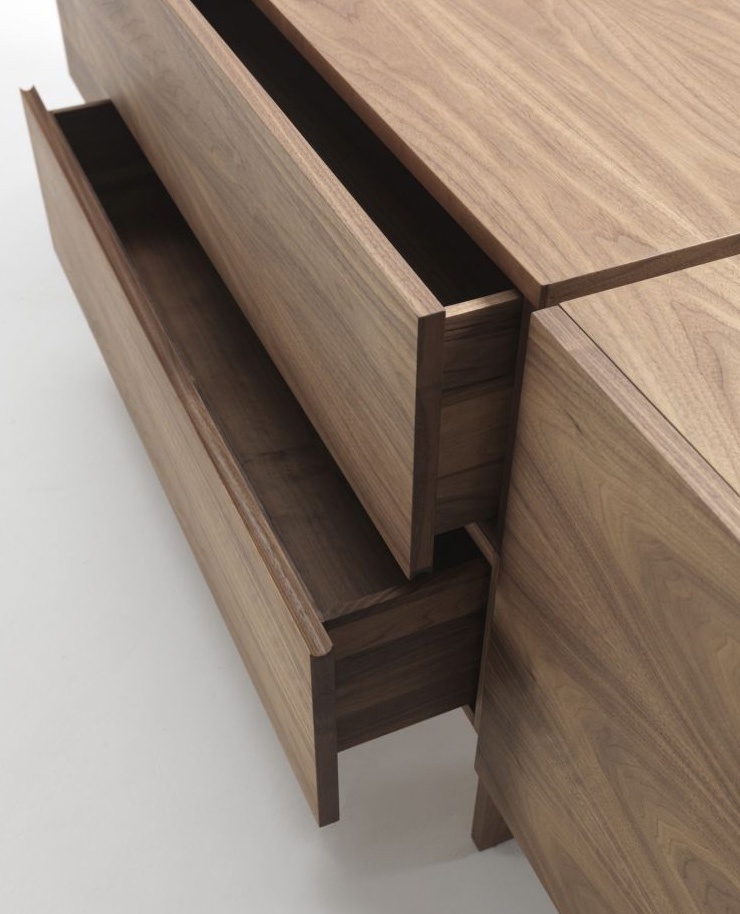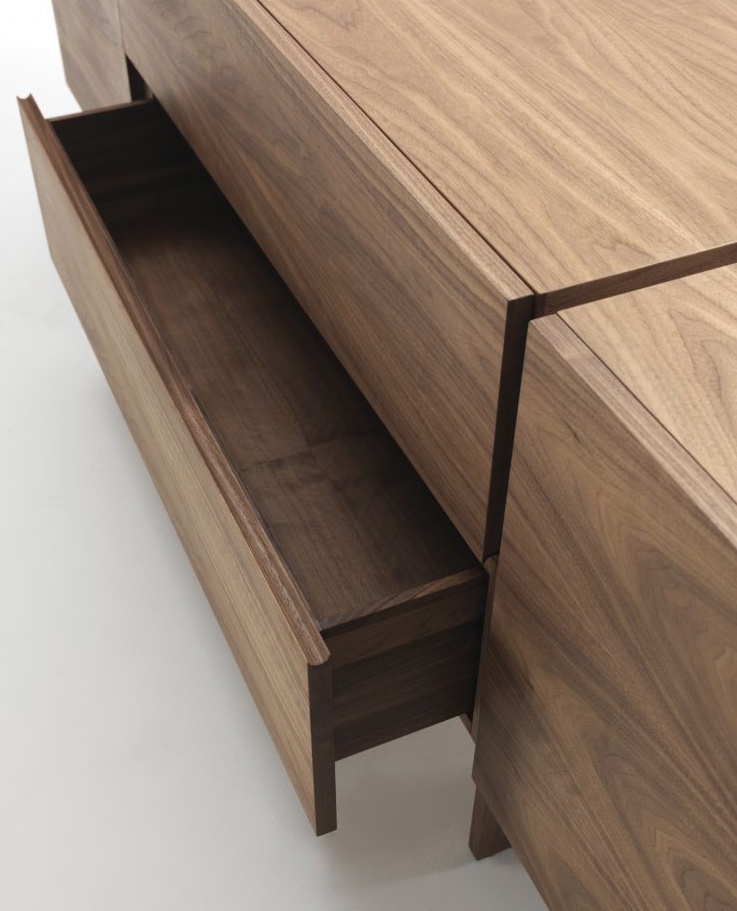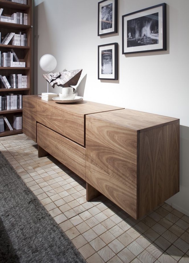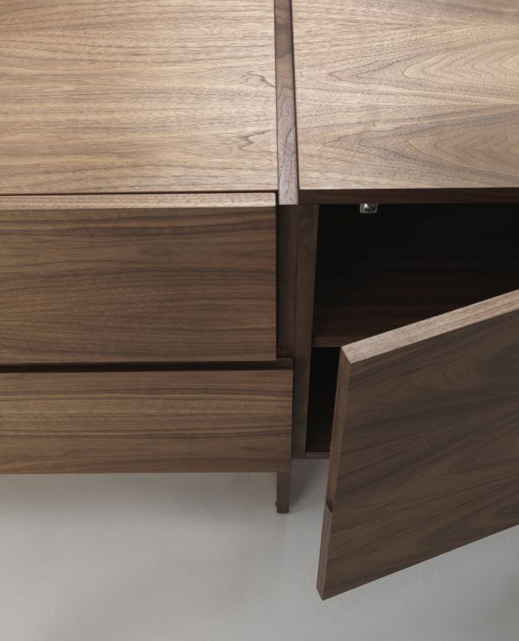 Cupboard for living room AKI from the Italian manufacturer Riva 1920. Made of solid wood. Model c pull-out drawers and swing doors. Can be a final and striking detail of the design of your home. The perfect addition to any interior. The color of natural wood.