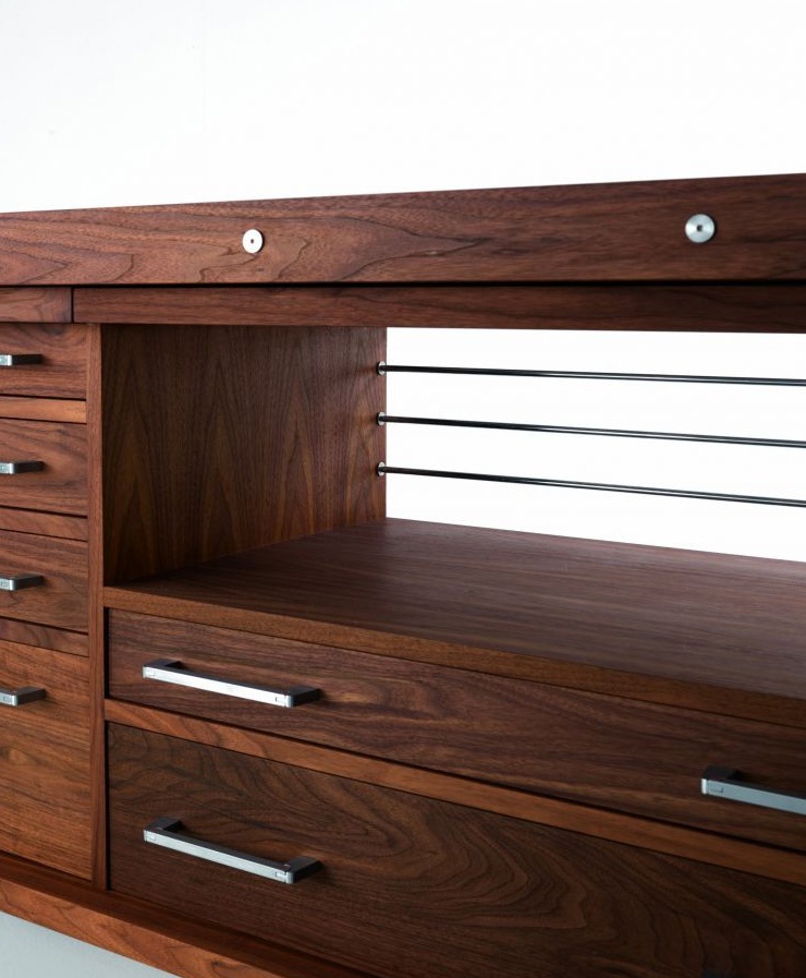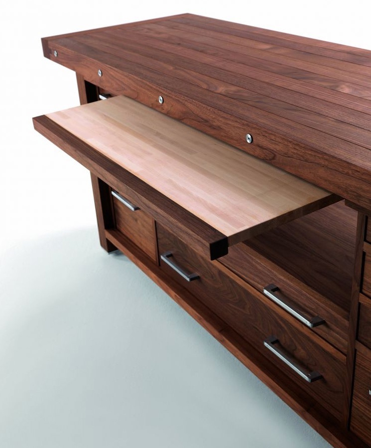 Stand Coblenza from the Italian manufacturer Riva 1920. Made of solid wood with drawers. The model allows us to harmonize with a modern interior, with additional space in which to remove or hide unwanted items. The color of natural wood.