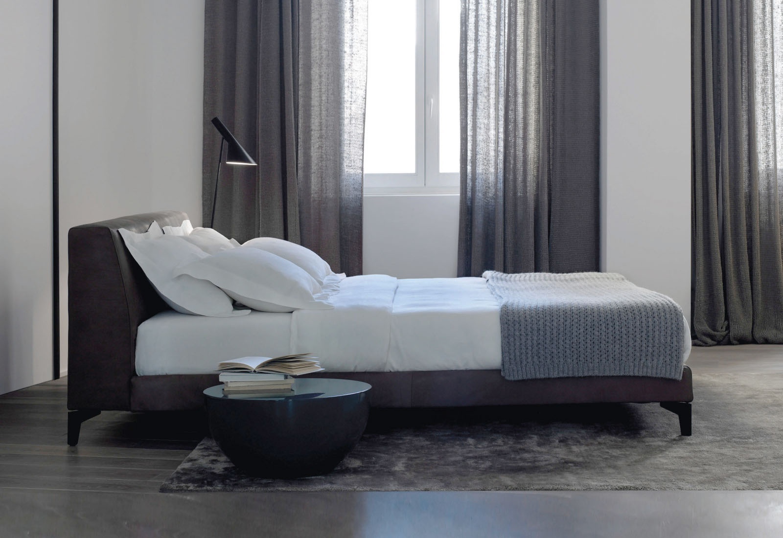Bed Lewis Up from the Italian manufacturer Meridiani. The frame is made of solid wood, legs are metal. The headboard is covered with a textile or leather. The color and texture of your choice from the collection of the company. The model is made in a modern style.
