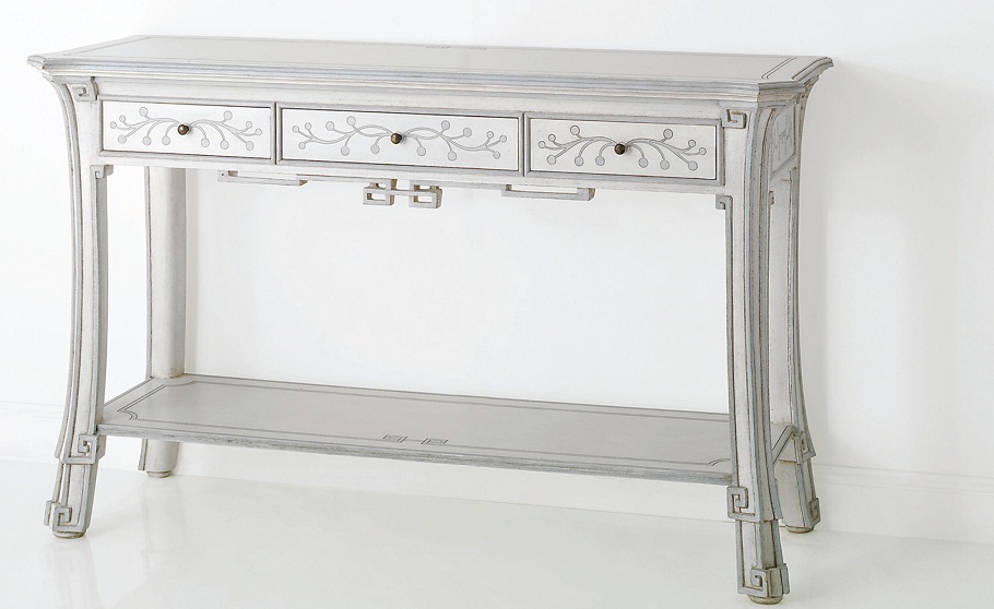 The console from the Italian manufacturer Chelini. Includes three drawers. Material - solid wood. Round handle made of metal. The surface of artificial aged. Color is back in stock. The pattern on the facades are painted by hand. Made in a classic style.