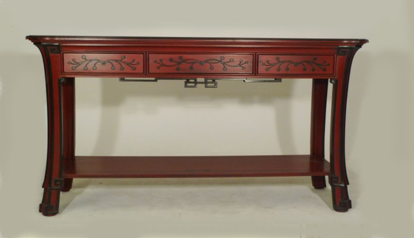 | Description: | The console from the Italian manufacturer Chelini. Includes three drawers and a shelf. Material - solid wood. Finish - Cineseria Rossa Nera in black and red. |