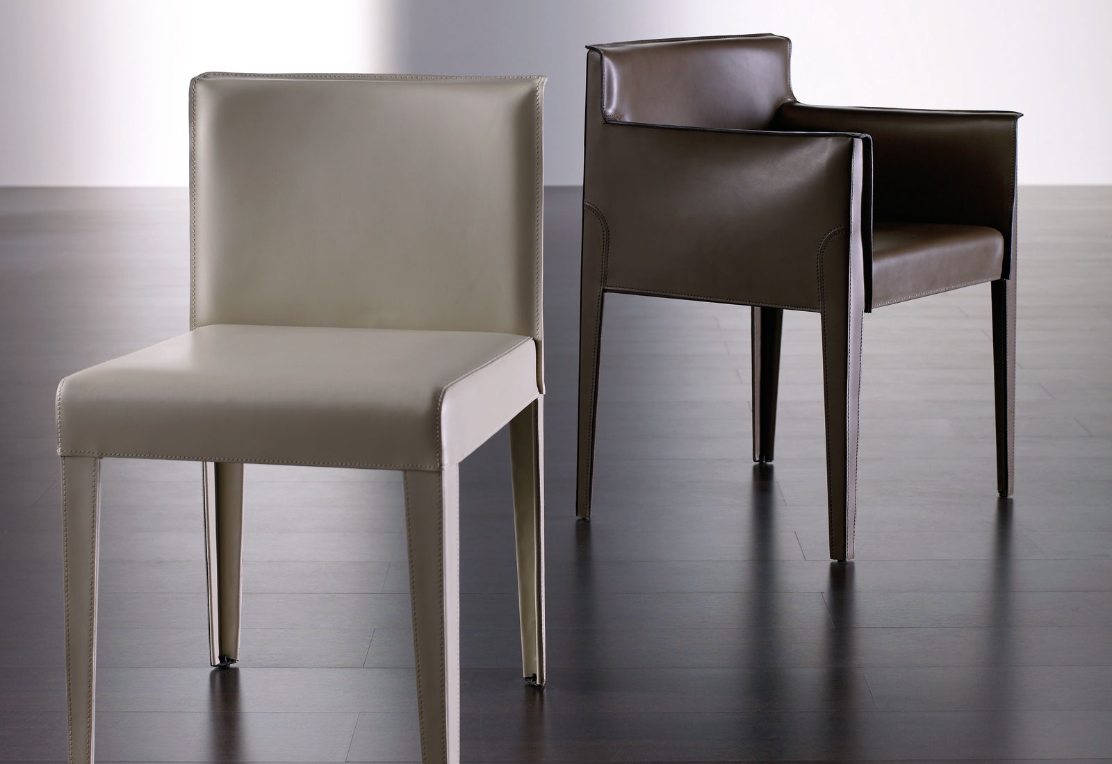 Tautou chair from the Italian manufacturer Meridiani. The frame is made of metal. The seat and backrest with soft leather upholstery. The modern design. A great choice for the interior. Colours in stock.
