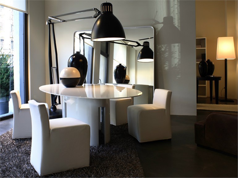 Gong dining table from Italian manufacturer Meridiani. Legs, table top - natural wood. Finishing - glossy / Matt varnish. The model is made in modern style. Colours in stock.