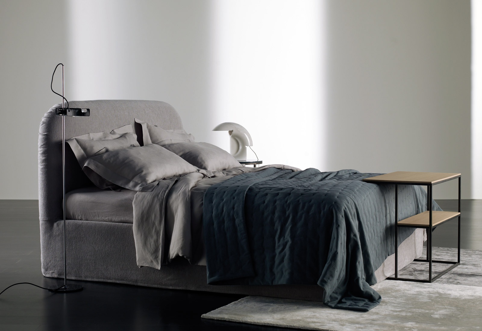 The Turner bed from Italian manufacturer Meridiani. The frame is made of natural wood, upholstery - textiles from a range of campaigns. Double model with upholstered headboard is the perfect choice for the bedroom in modern style. Colours in stock.