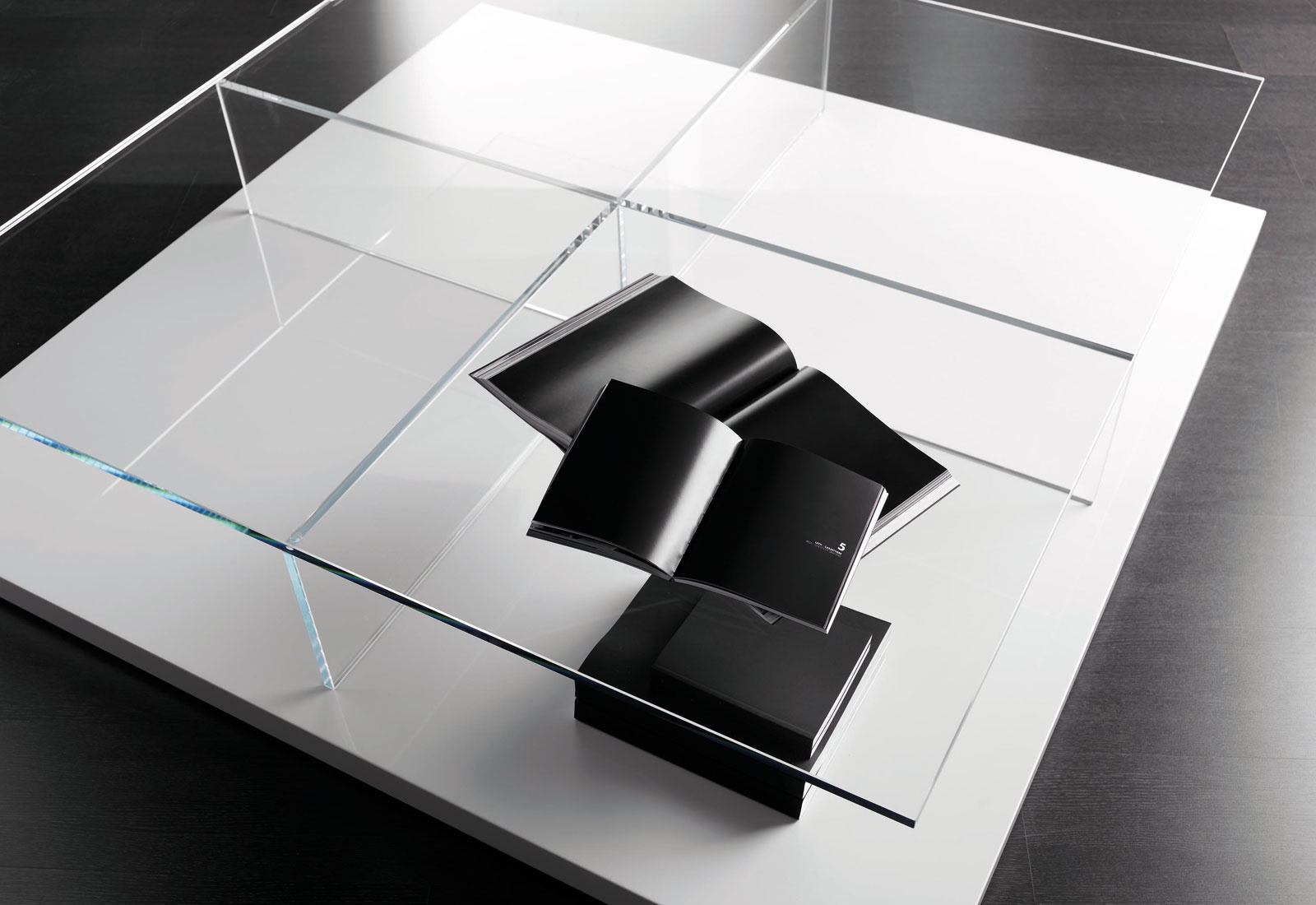 Clooney coffee table from the Italian manufacturer Meridiani. The base is natural wood with glass. Finish - gloss lacquer. The table top is glass or wood. The model is made in modern style. Colours in stock.