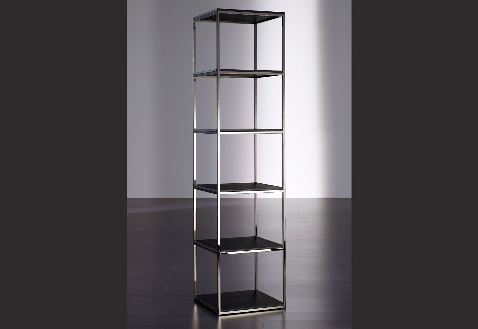 Bookcase Hardy from the Italian manufacturer Meridiani. Frame - metal. Shelf - natural wood or black glass. Paklok finish - oak veneer or Matt/glossy lacquer. The model is made in modern style. Colours in stock.