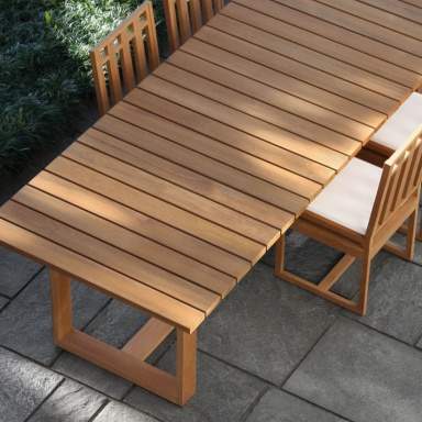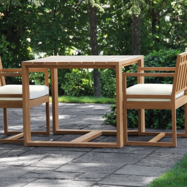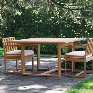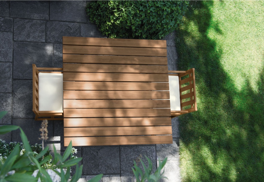 Table for garden Square from the Italian manufacturer Meridiani. Legs, table top - natural wood. The veneer finish. The model is made in modern style. Colours in stock.
