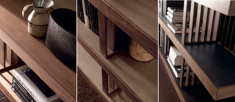 Rack Memory from the Italian manufacturer Ulivi. The frame is made of fir wood. Are available 2 models, leather lateral parts and walnut veneer. Model with open shelves. A chic choice for interior design in classic and modern styles. Product color - catalogue of the manufacturer. The modern design.