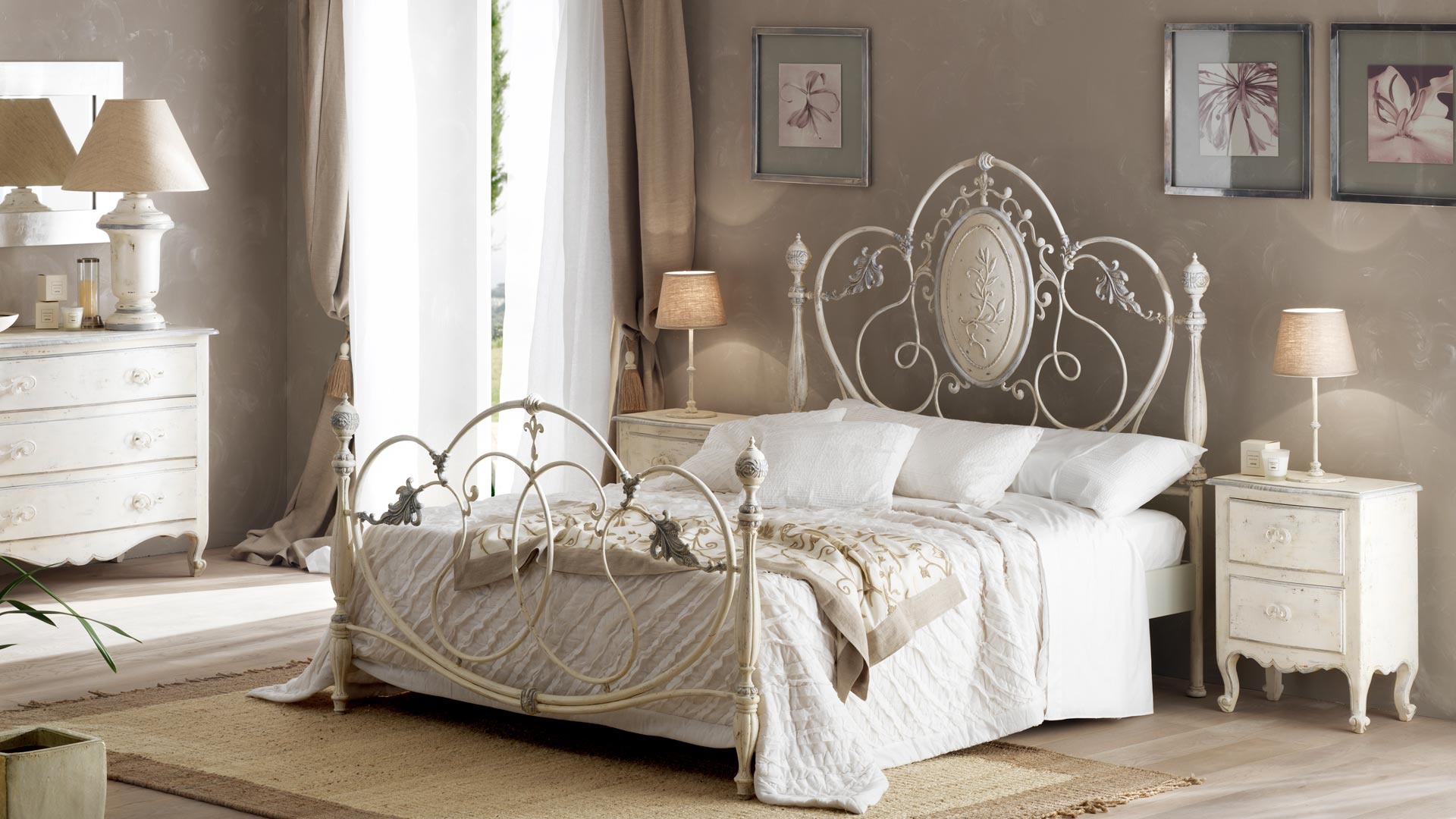 Double bed Caruso from the Italian manufacturer Cantori. The model is forged with high headboard decorated with aluminum sockets. Legs frame made of metal.The style is classic. Colours in stock.