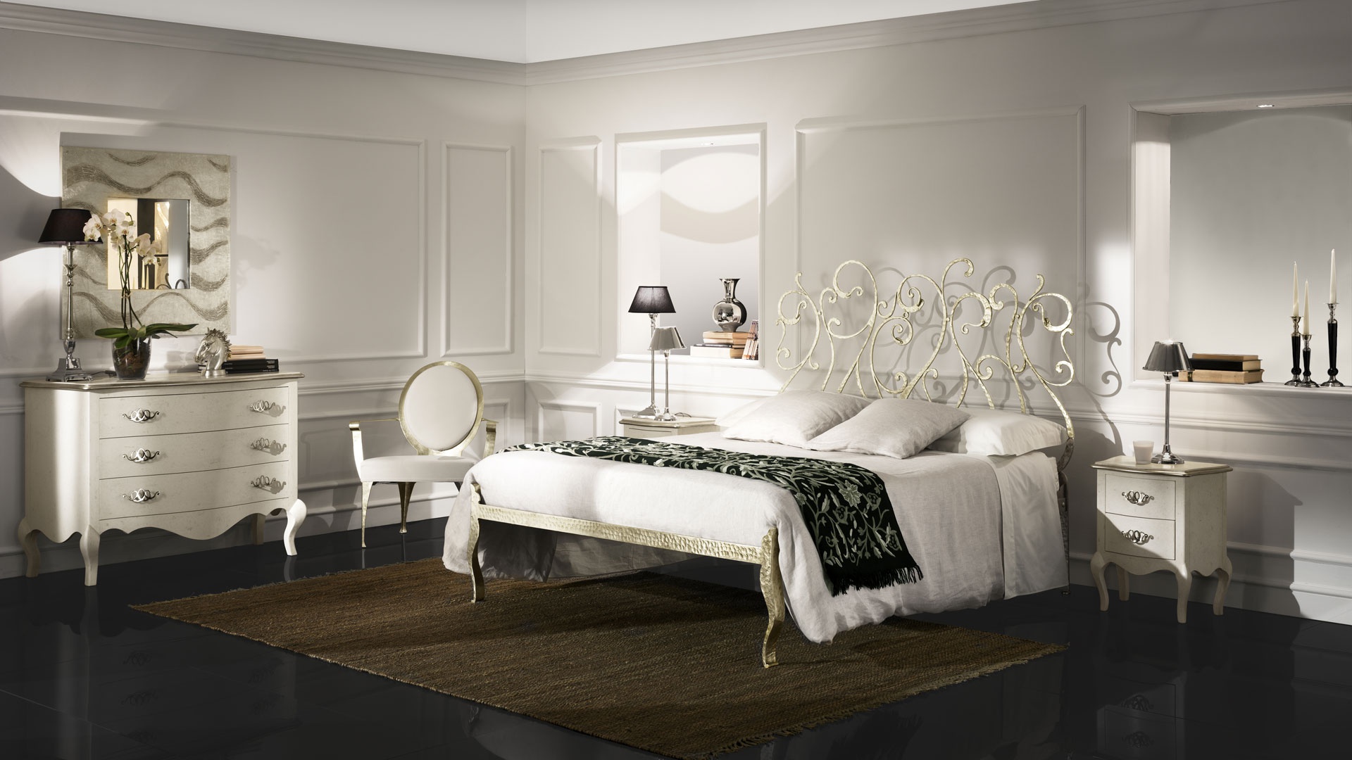 Double bed Klimt from the Italian manufacturer Cantori. Wrought iron bed with artistic embossing elements. Handmade with the surface treatment of the eight layers of the fixing and protective finishes, from internal frame to external. Model of the collection of Chic Atmosphere designed in the style glamor. Colours in stock.