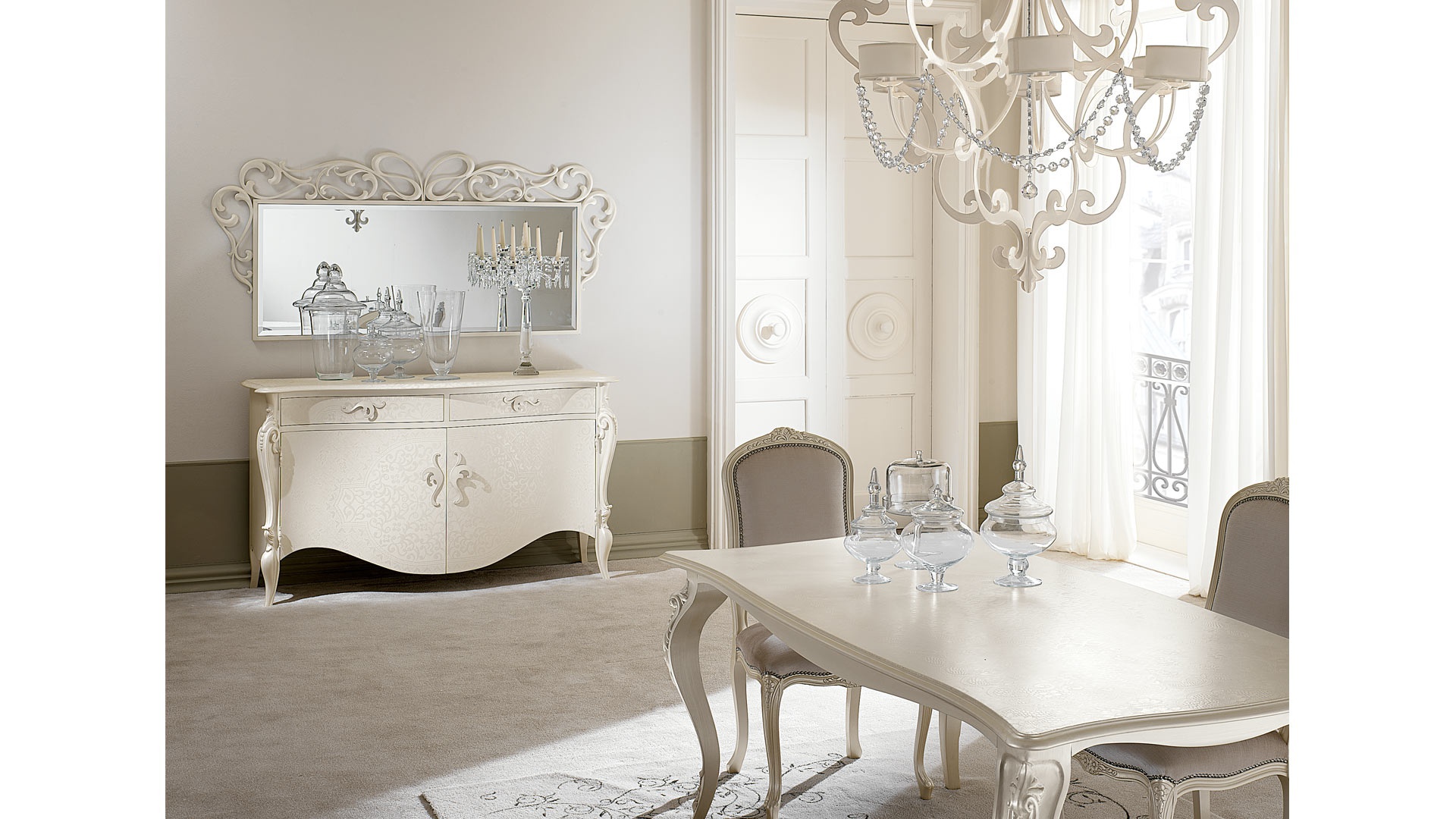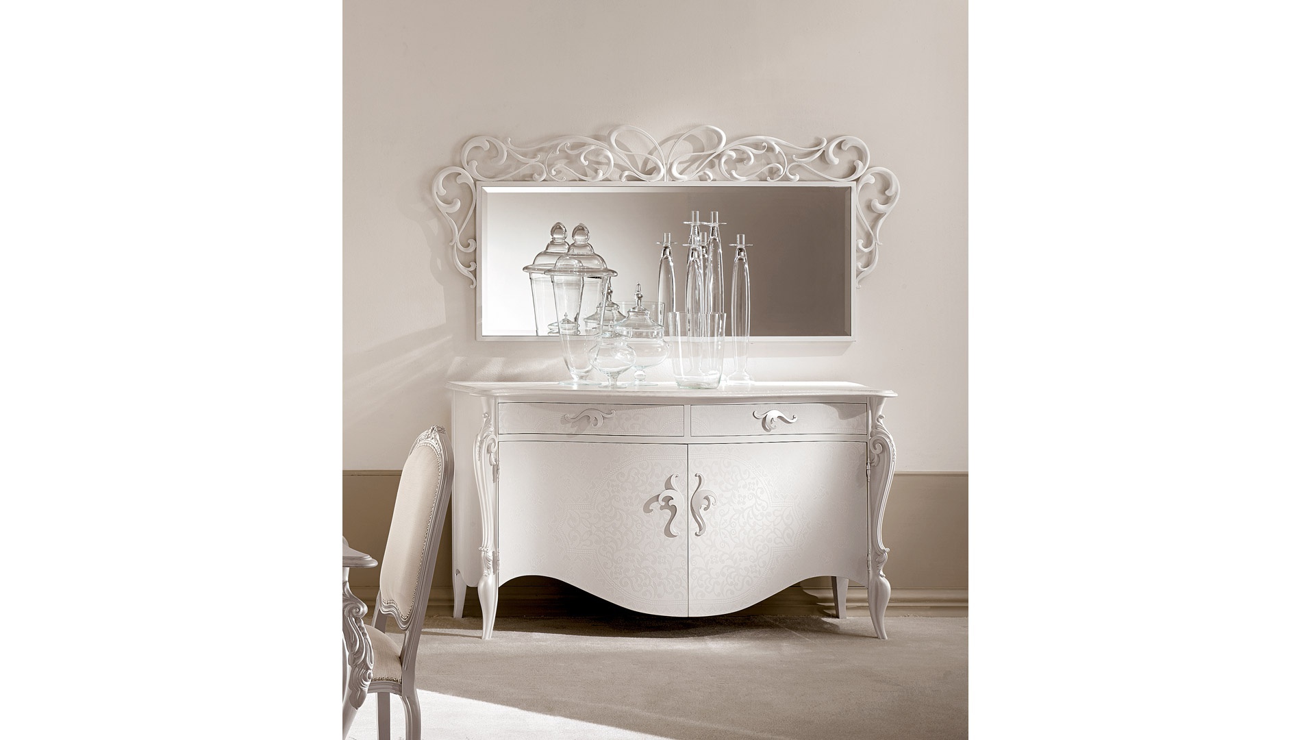 Gregory dresser from the Italian manufacturer Cantori. The model is made with carved legs from solid wood. Legs and frame are decorated with hand-carved. Finish - patina, lacquer. Colours in stock.