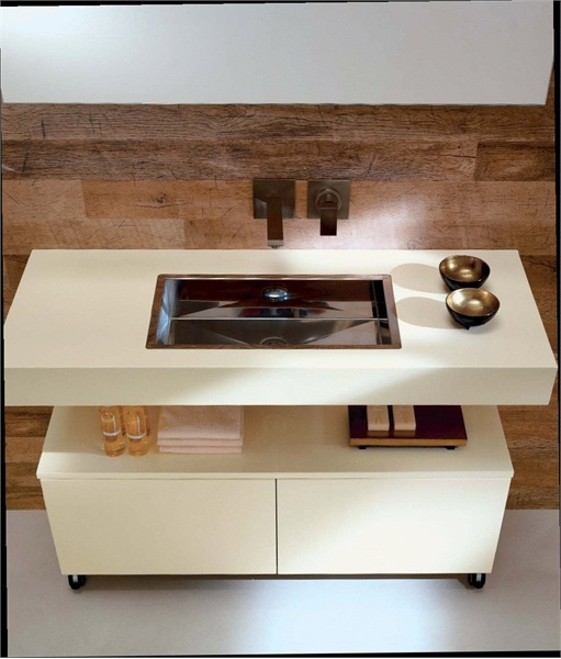 The bathroom set, Casual C5 from Italian manufacturer Pedini. The bathroom set with mirror. Worktop rectangular stainless steel sink. Outdoor Cabinet on wheels. Frame and fronts are made of water-resistant material in veneer dark oak. Countertops made of cementite (cementite ossido, cementite sabbia), glass (Marrone, Bianco, Grigio), porcelain (Hammus bianco), Cristalan artificial stone, natural stone (Pietra grey, Basaltina, Grigio star), steel (Satinato). Set augmented hinged Cabinet.