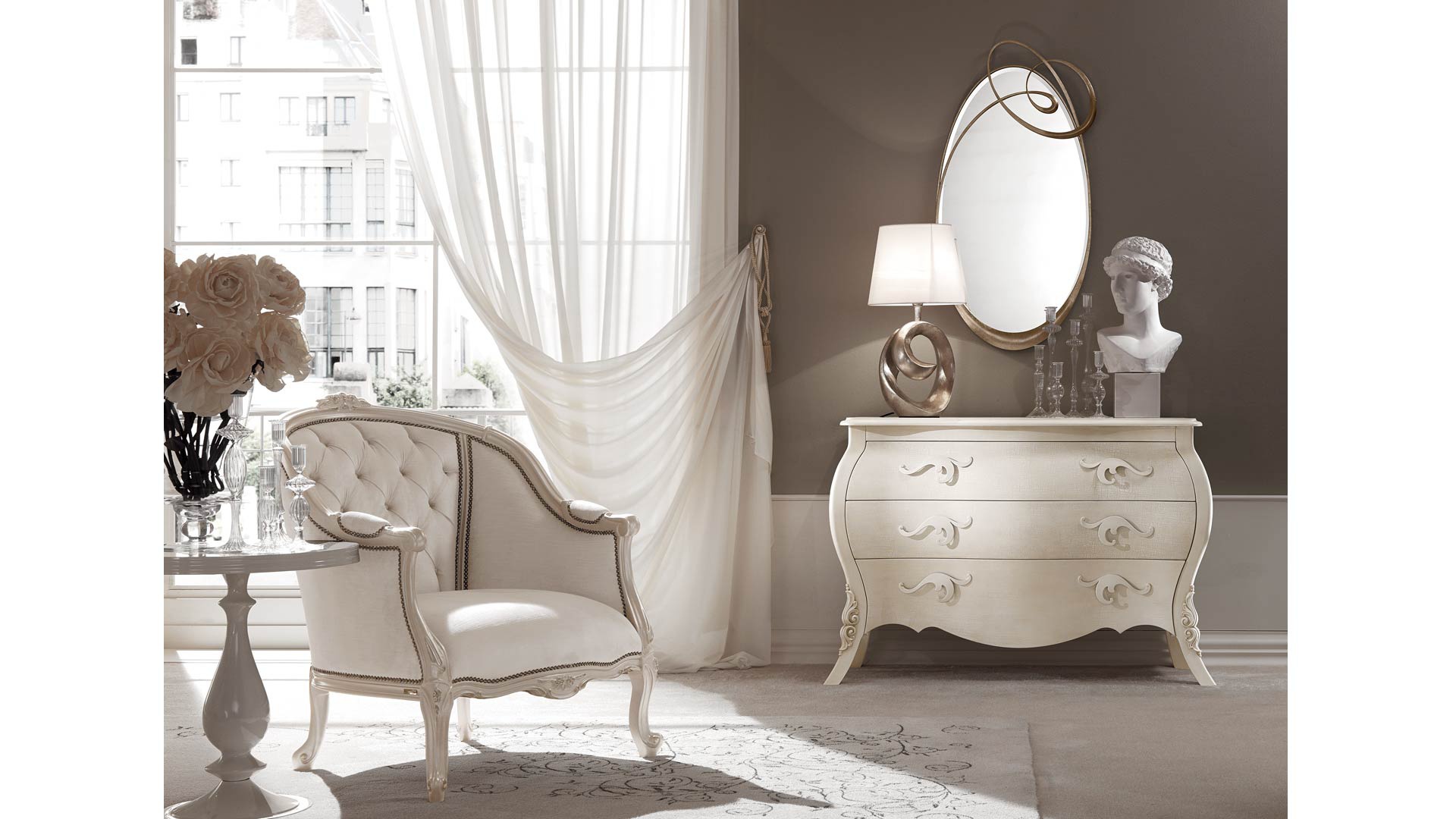 The Sissi armchair from Italian manufacturer Cantori. The model is made from solid wood and decorated with handmade carving. Upholstery - textiles. The finishing - varnish. The style is classic. Colours in stock.