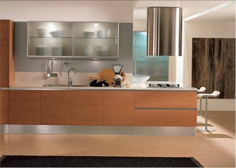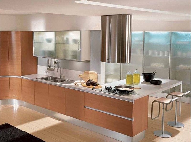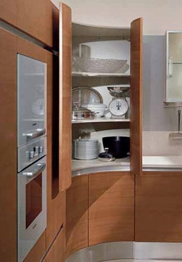 Artica kitchen by Italian manufacturer Pedini. Set is made on a frame of particle Board in melamine finish.The table top is made of stainless steel, granite, marble or artificial stone. The model has rounded lines. Colors - brown.