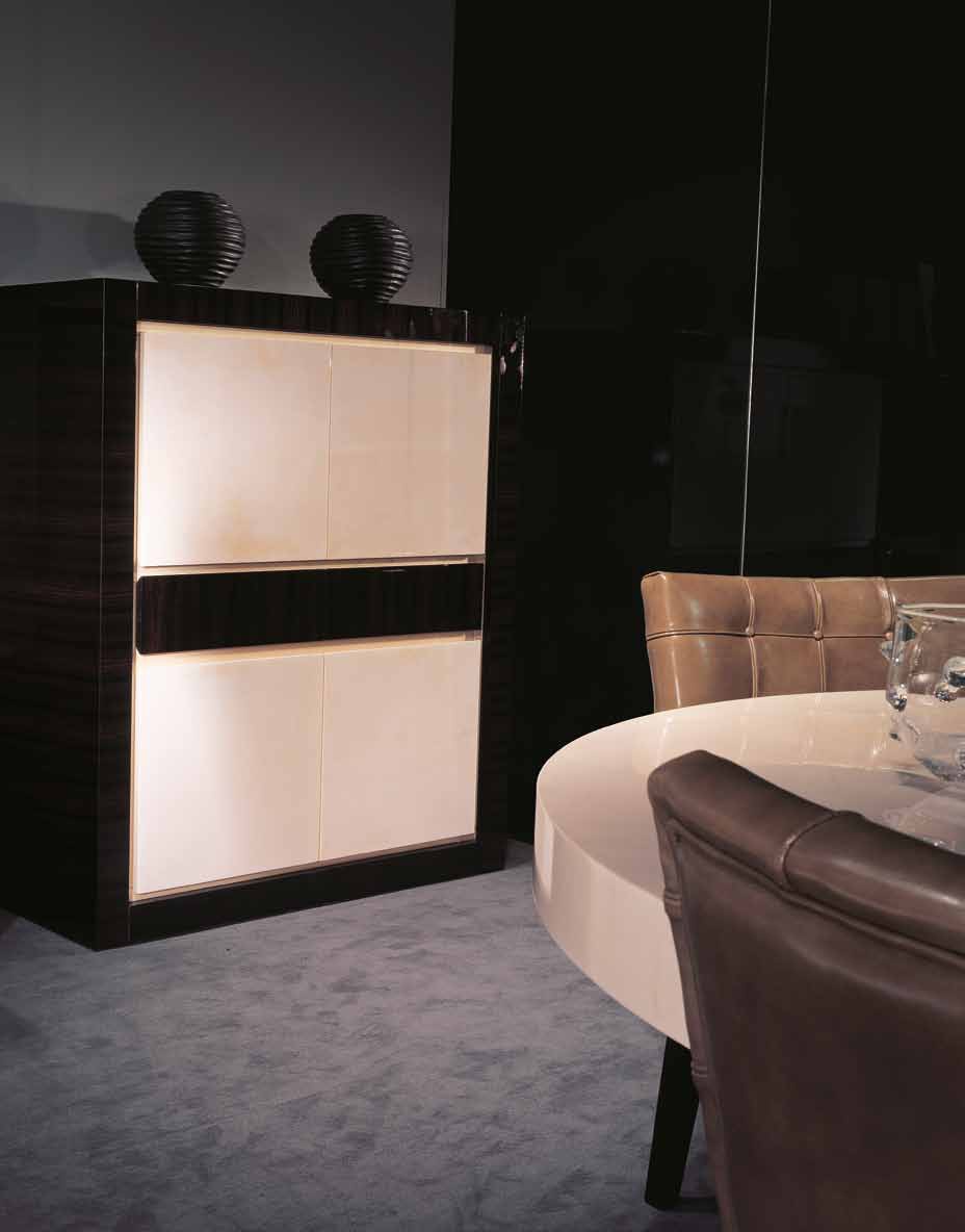 Sideboard Westi from the Italian manufacturer Ulivi. The frame is made of spruce, veneer - black Makassar, maple. Finish - lacquer, leather. The model is made in modern style. Colours in stock.