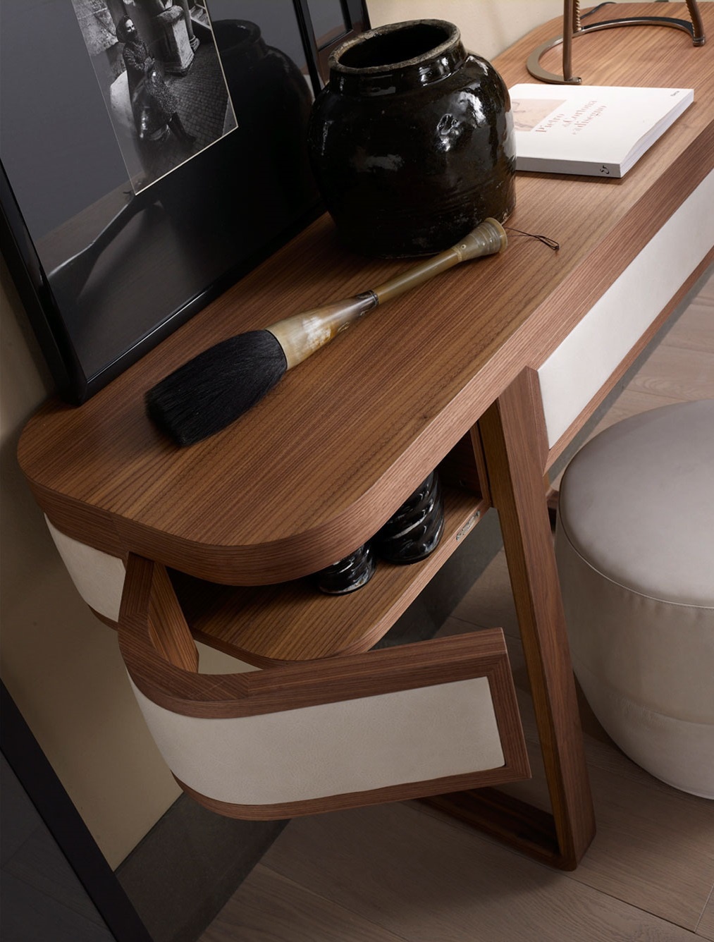 The console World Luxury from the Italian manufacturer Ulivi. The frame is made of wood. Table top and legs are made from walnut wood. Decor stands leather trim. The console has hidden niches. A great model for modern interiors. Colors - in stock.