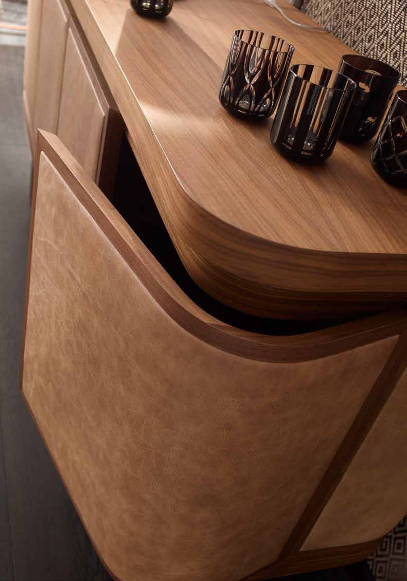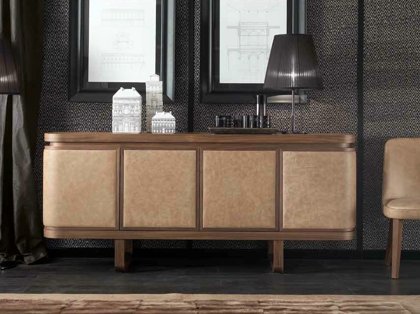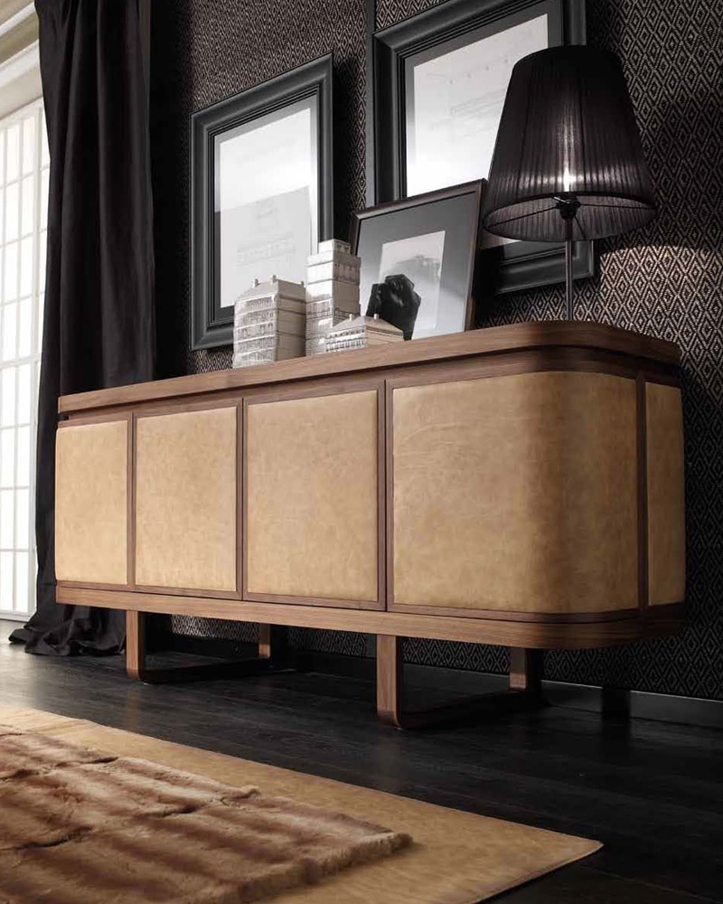 The World Luxury sideboard from Italian manufacturer Ulivi. Model with front panels upholstered in leather. The frame is made of wood. Table top and legs are made from walnut wood. A great model for an interior in art Deco style. Colors - in stock.