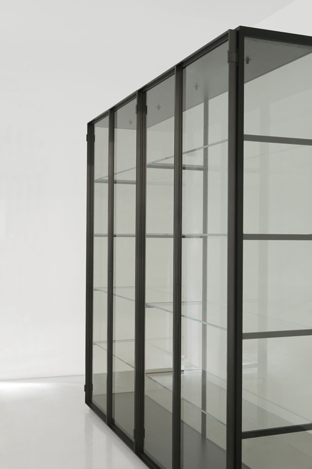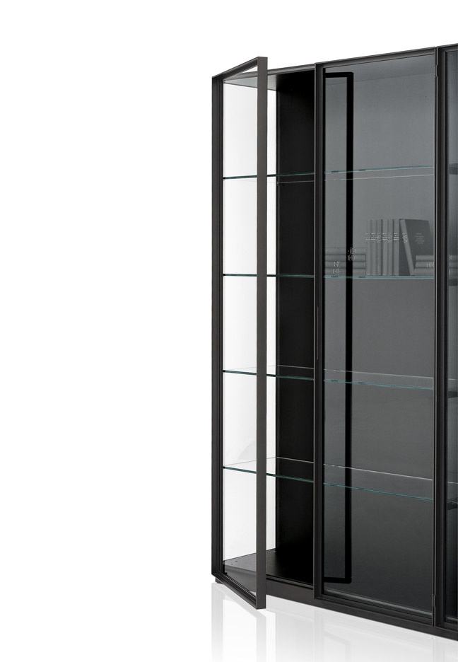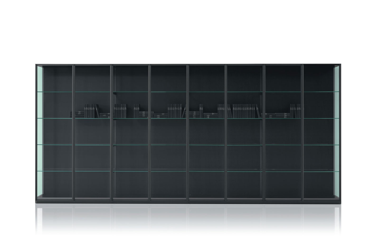 Rack with glass shelves Ex-Libris from the Italian manufacturer Porro. Frame - metal. Rear panel - the oak tree. Shelves - glass. The model is made in modern style. Colours in stock.