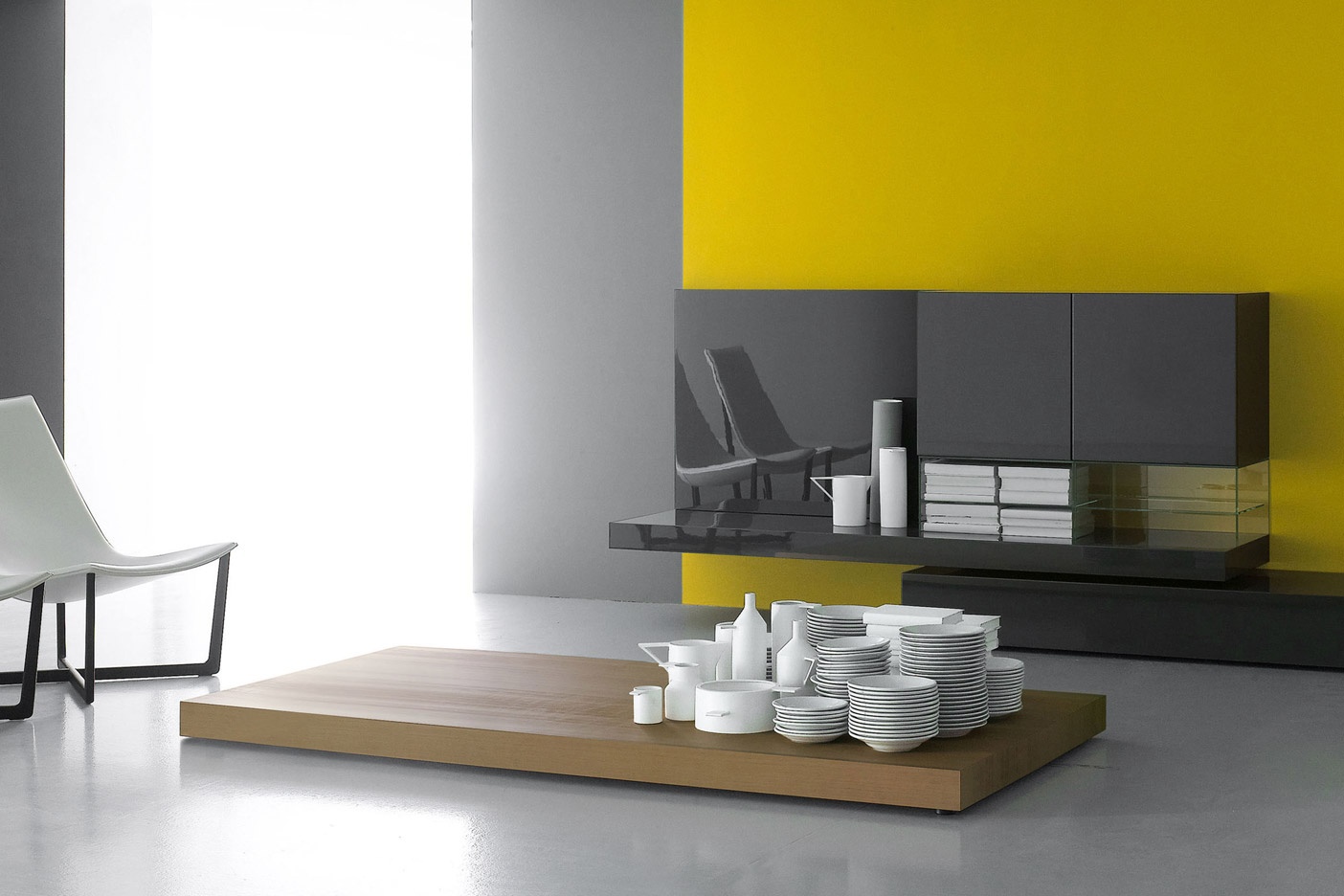Panca Modern coffee table from Italian manufacturer Porro. The model is made of solid wood. The finishing - varnish. Legs of chromed steel. The style is modern. Colours in stock.