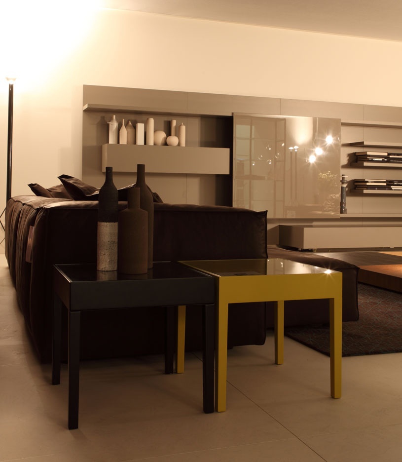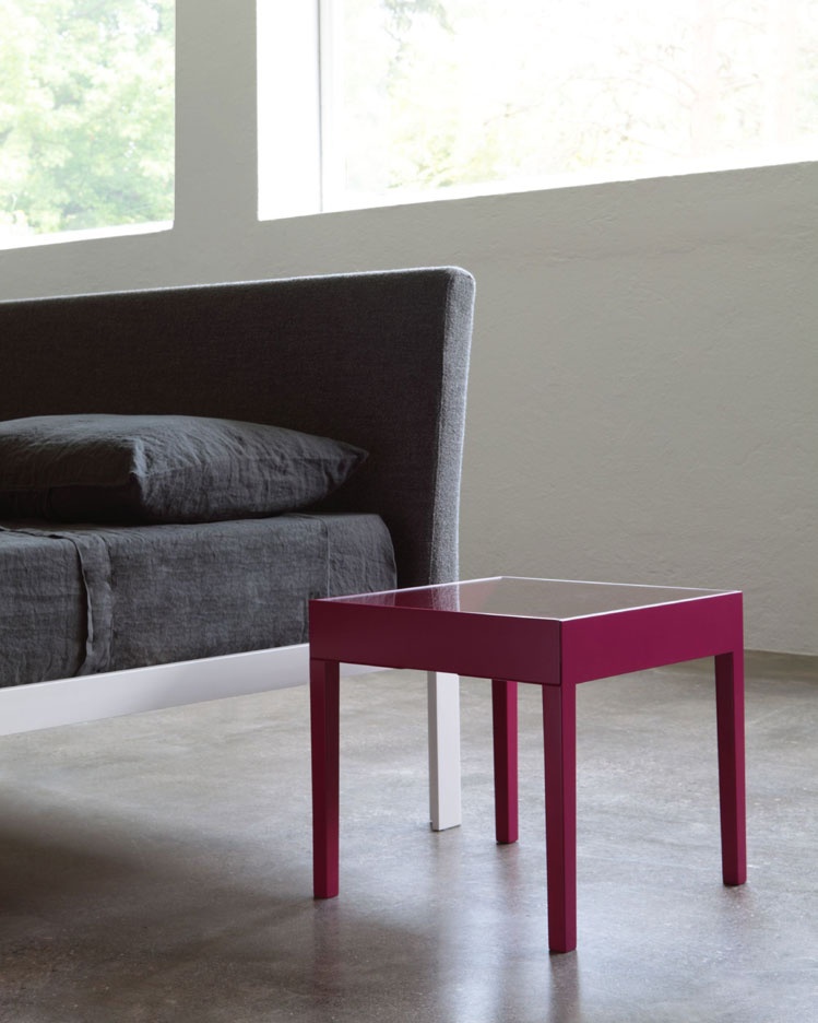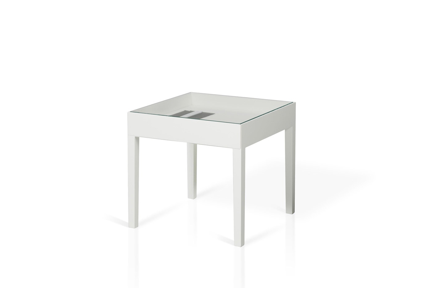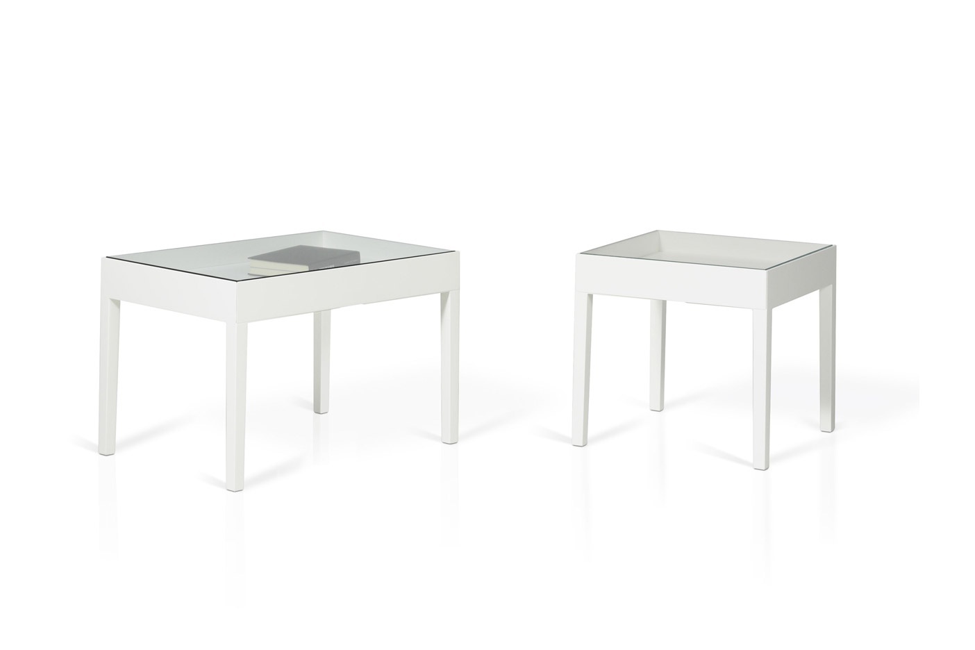Bedside table Showcase Table from Italian manufacturer Porro. Legs, frame - natural wood. Worktop - glass. The model is made in modern style. Colours in stock.