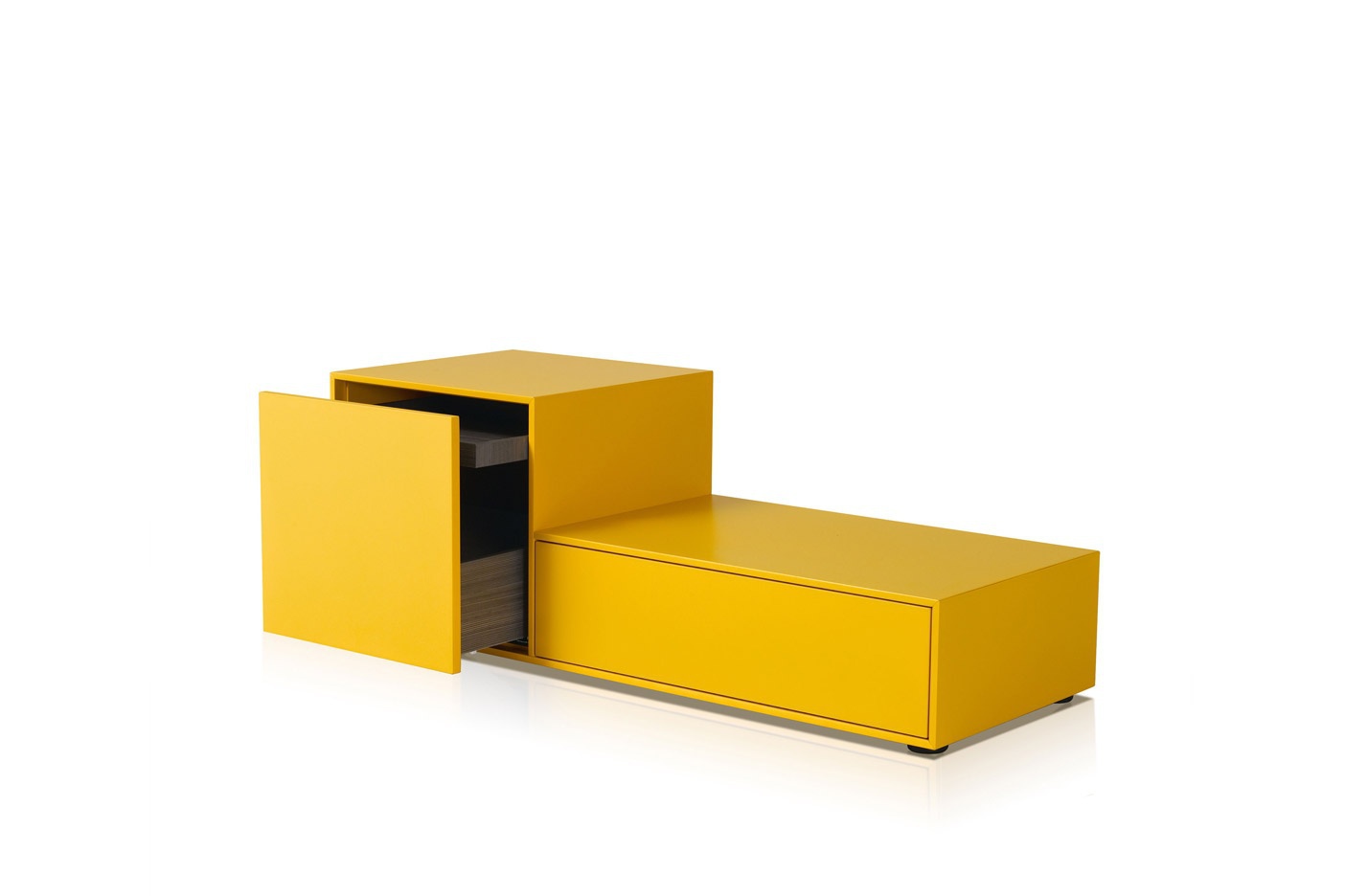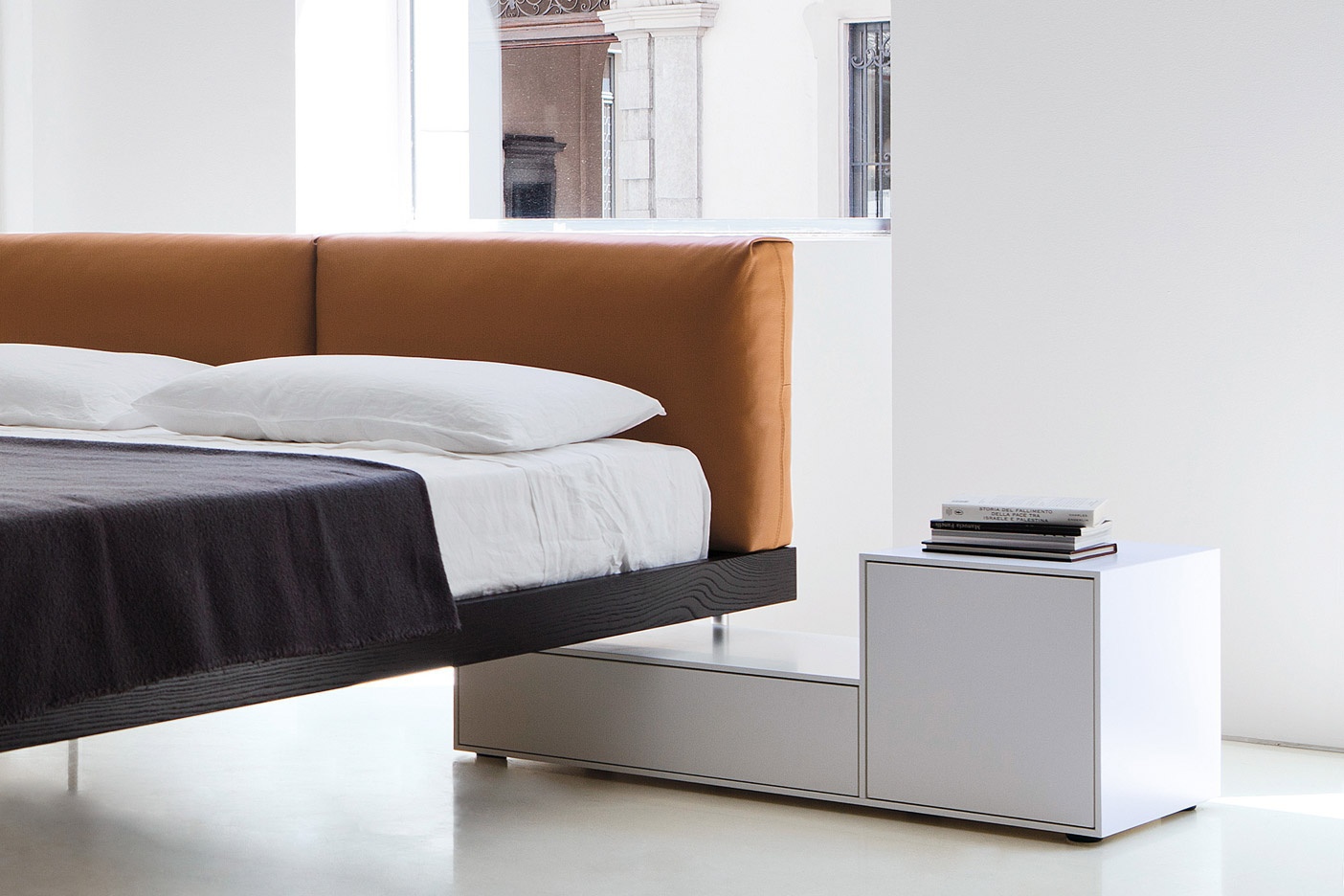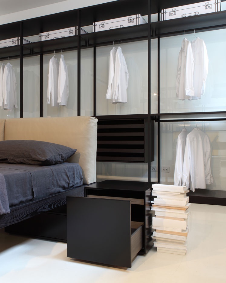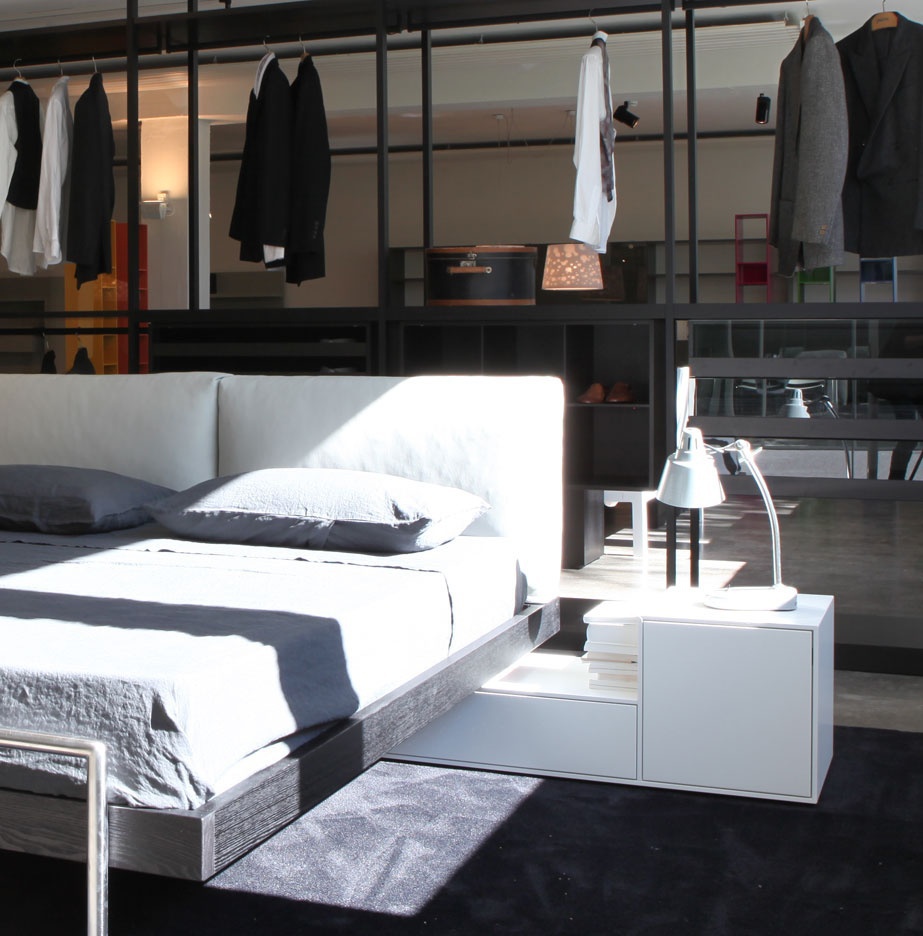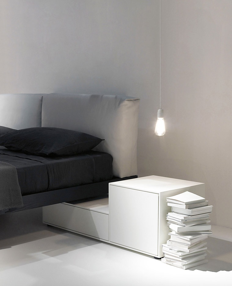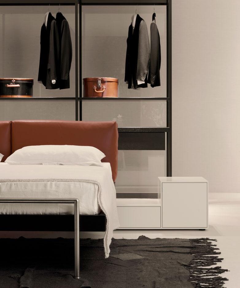 Truck bedside table from Italian manufacturer Porro. The case is natural wood. Finish - gloss lacquer. Model with drawers in a modern style with locking mechanism padded bra. Colours in stock.