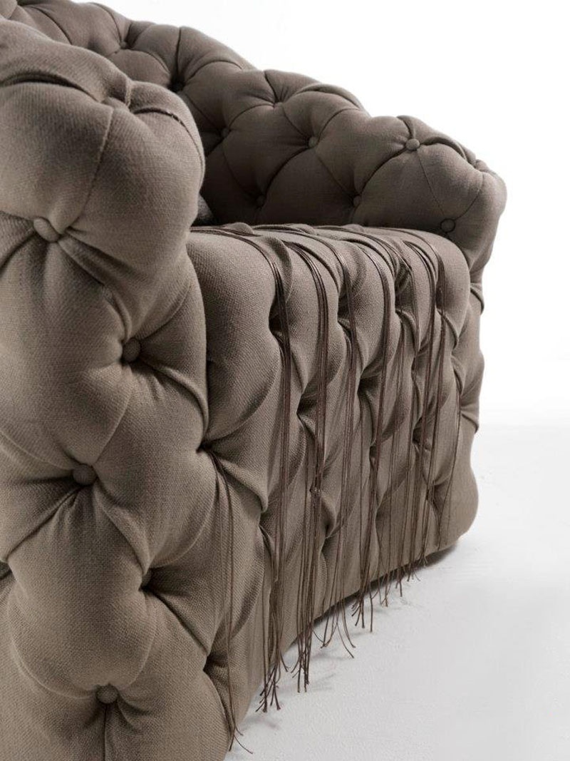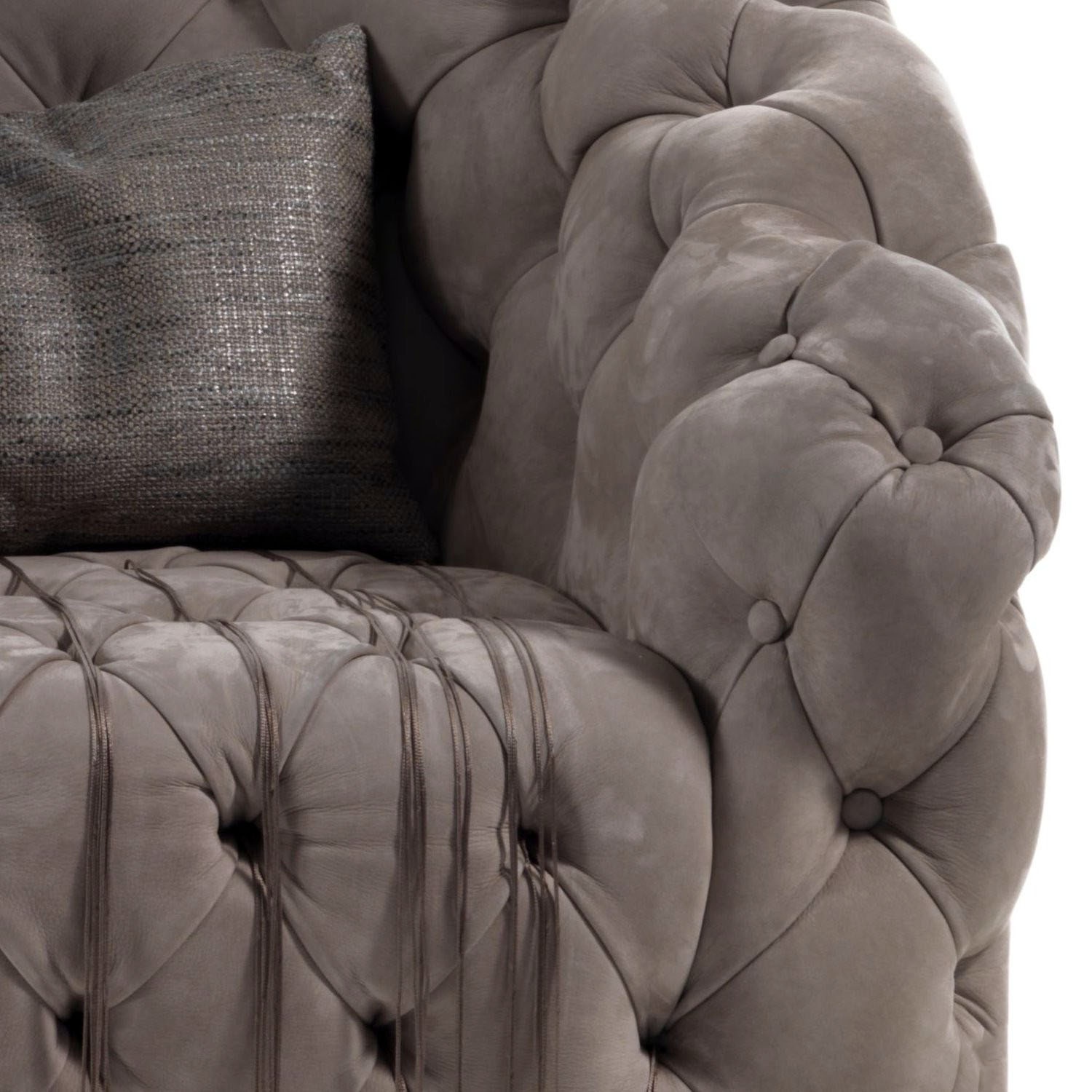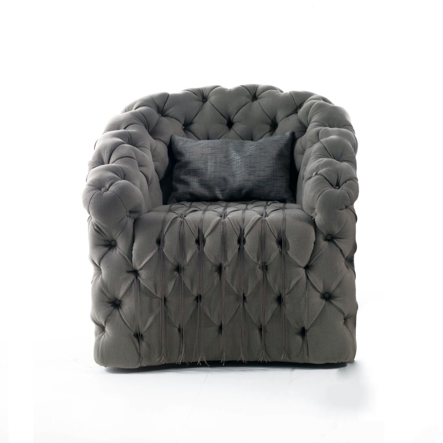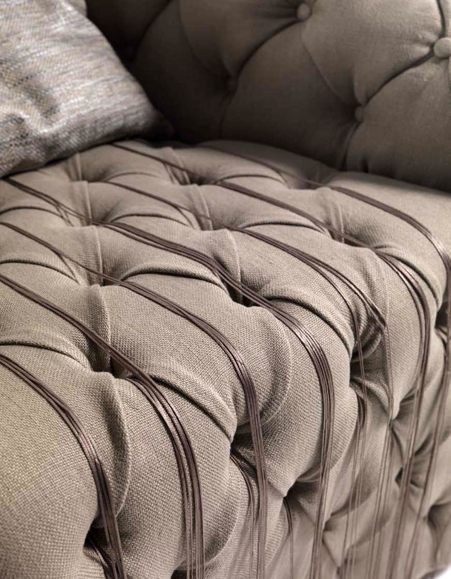 Pelham Capitonne chair from the Italian manufacturer Moda. A chair made of natural wood. Upholstery made of textile, decorated with stitch Capito, presents two types of upholstery. Filling - polyurethane foam. Designer d?cor in the form of tightened ropes seat to match the chairs. Colors according to the catalog, the photo gray. The model is handmade. The style of the furniture is glamour.